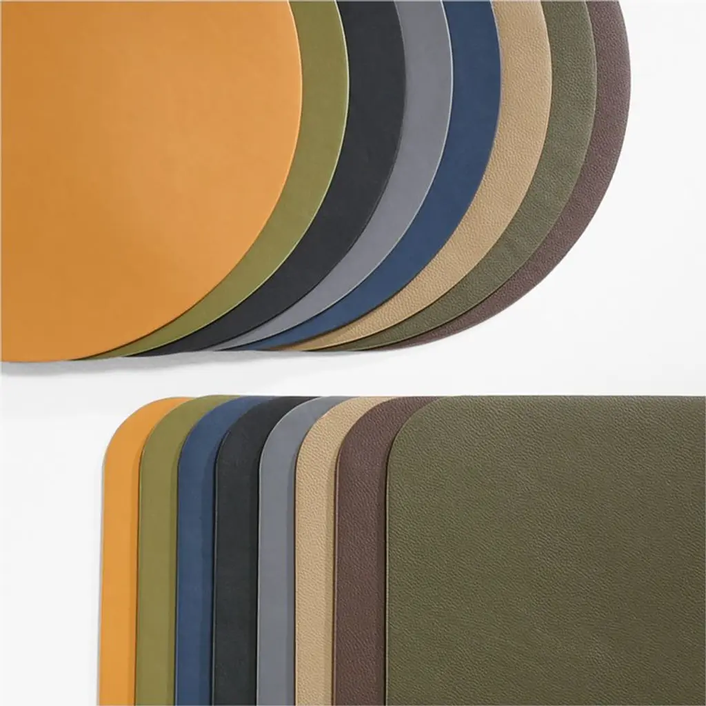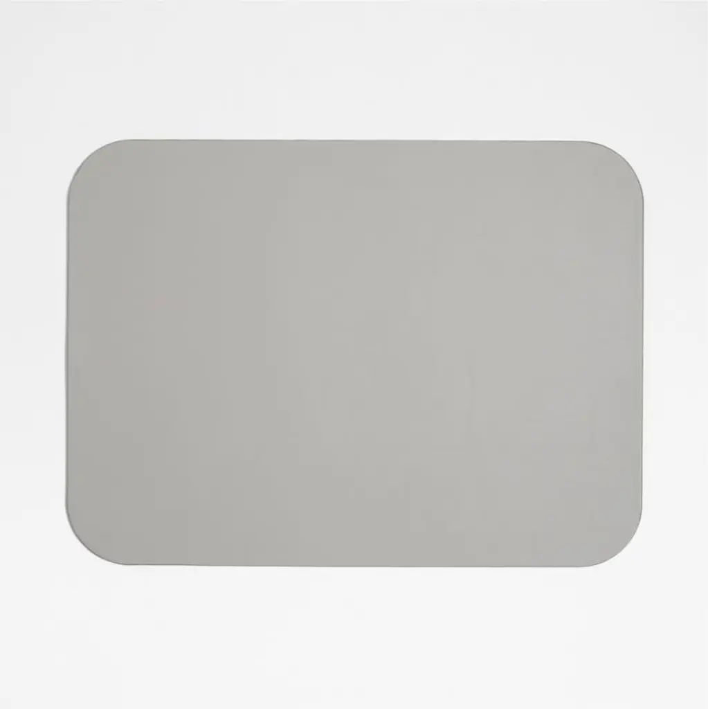 Our Rizzo rectangular placemat replicates the luxe look of leather. Dark grey and flipping to lighter tint, the double-sided placemat sets a sophisticated and table-saving foundation for any place setting. Made of responsibly sourced materials, the Rizzo faux leather placemat is a Crate & Barrel exclusive.
