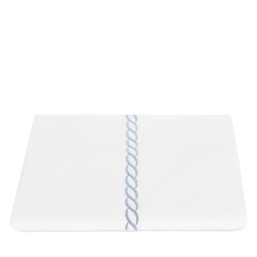 The Rochelle collection of coasters and placemats features a vibrant combination of a fine leather center and a refined hand-woven trimming (passementerie) edge. This collection is ideal for year-round dining indoors or outdoors and requires simple care: wipe clean with a sponge or cloth.