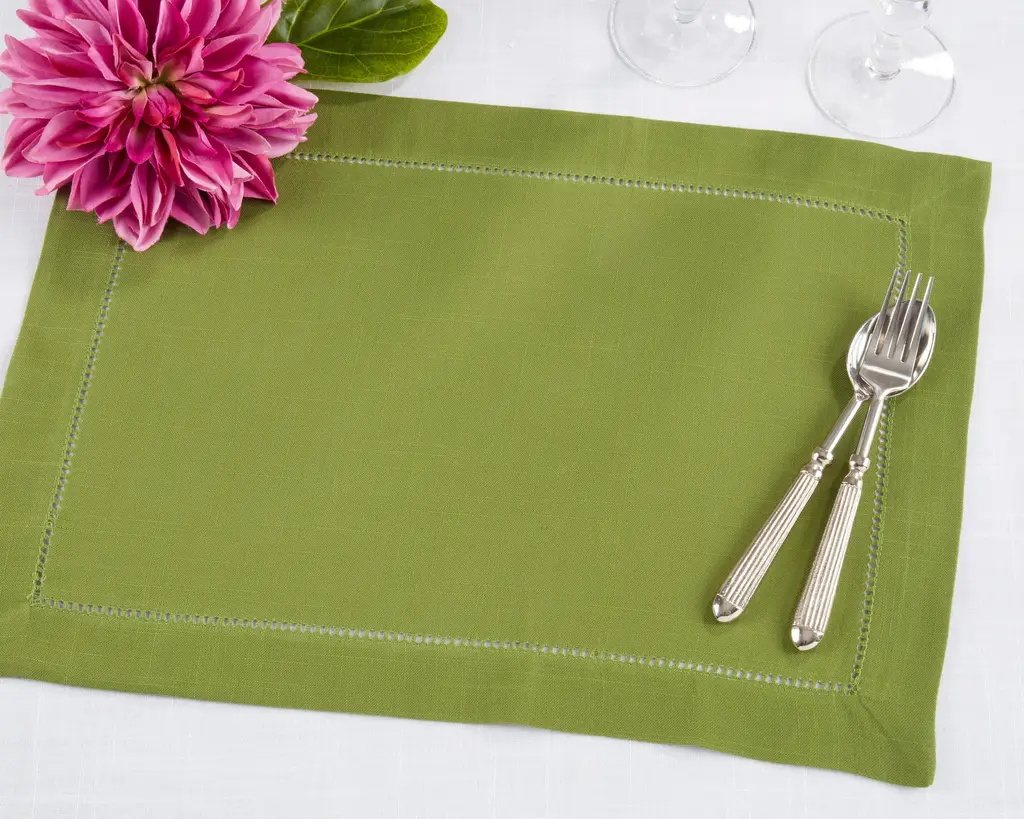 These classic and timeless Hemstitched Placemats are a great addition to your tabletop linens, whether you are entertaining guests or simply hosting a family lunch. They coordinate perfectly with both solid colors as well as patterns or prints.