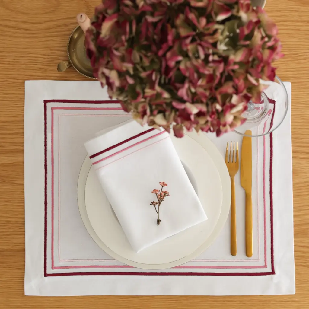 Set of 2Bring a blush of elegance to your table with the Rosé Cotton Napkin Set of 2 from Km Home Collection. Crafted from premium Turkish cotton, these napkins feature a soft rosé hue with a delicate floral embroidery, adding a touch of natural charm. Their luxurious texture and subtle pink tones make them perfect for any occasion, from casual brunches to elegant dinners. Pair them with our matching rosé-bordered placemats for a beautifully coordinated tablescape that exudes timeless sophistication and warmth.