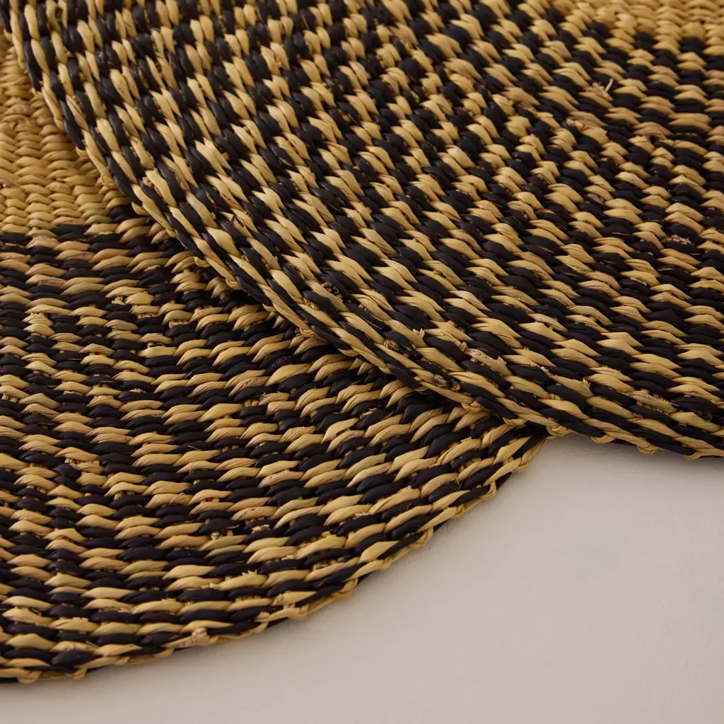 Whether you’re laying the table for breakfast or a special occasion, this colorful set of four Baba Tree round placemats will set a joyful tone for all your meals. Artfully hand-crafted in Ghana by Baba Tree’s talented artisan weavers, they are sustainably made of elephant grass, meaning they are durable and strong enough to withstand daily use. Even better, each piece is crafted under ethical working conditions and provides a meaningful income for its maker.The placemats are hand-dyed, so there may be slight variations in color.