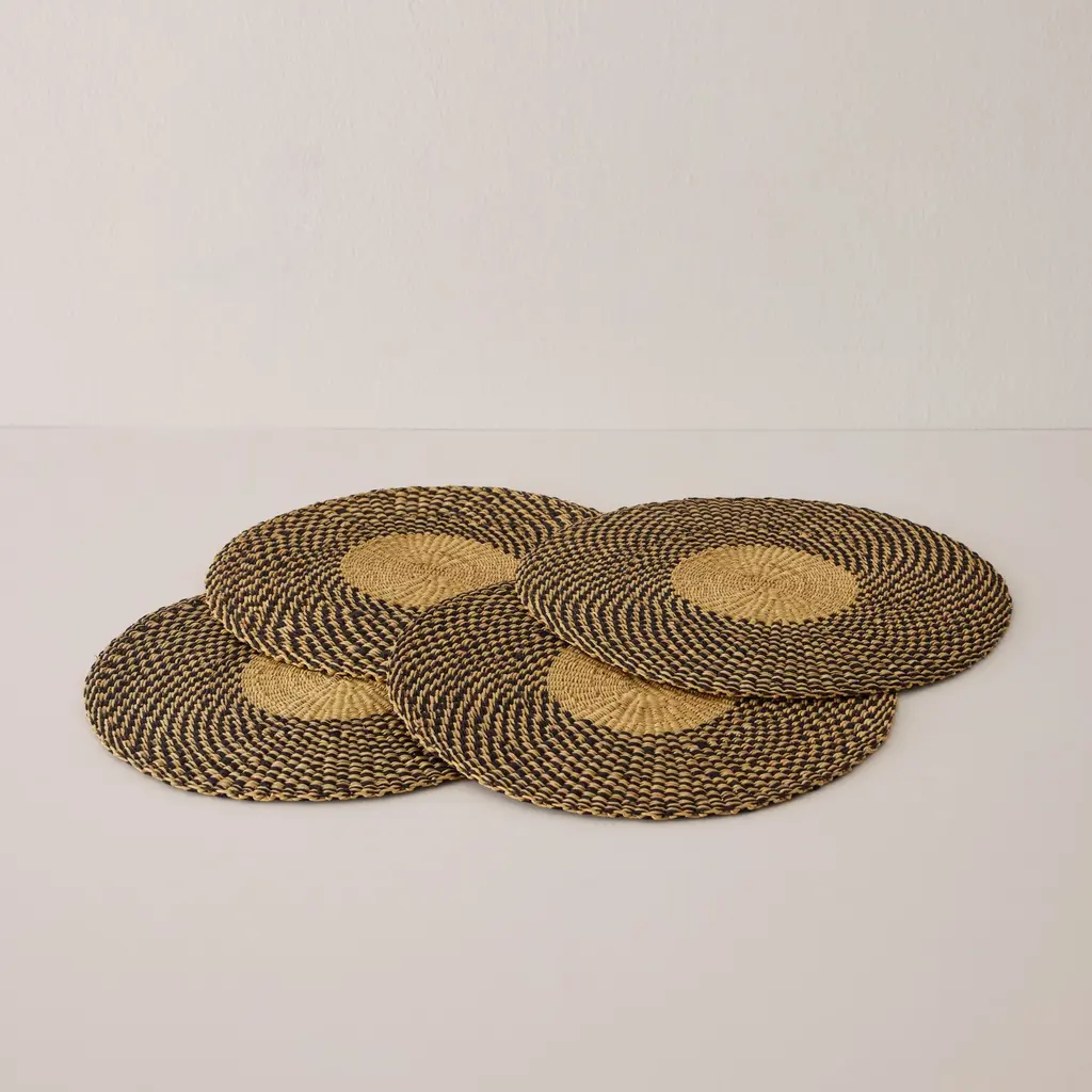 Whether you’re laying the table for breakfast or a special occasion, this colorful set of four Baba Tree round placemats will set a joyful tone for all your meals. Artfully hand-crafted in Ghana by Baba Tree’s talented artisan weavers, they are sustainably made of elephant grass, meaning they are durable and strong enough to withstand daily use. Even better, each piece is crafted under ethical working conditions and provides a meaningful income for its maker.The placemats are hand-dyed, so there may be slight variations in color.