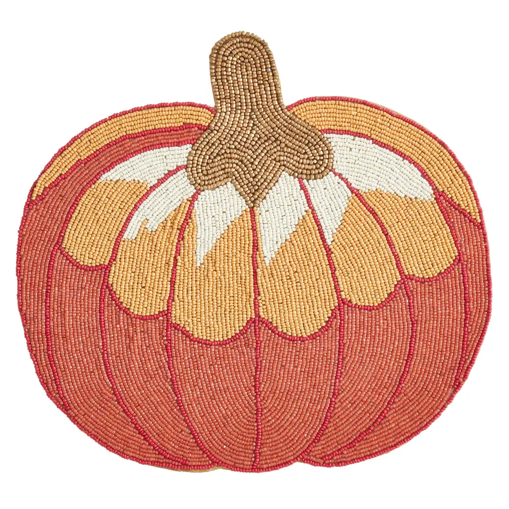 Transform your dining table into a parade of produce with our exclusive round placemat. It's handmade in India with a mix of beads forming a strawberry icon on an orange and white striped ground, with a coordinating pink border. A farm-fresh take on our fan-favorite beaded linens, this placemat is a whimsical statement on its own or layered with bright napkins and seasonal decor.