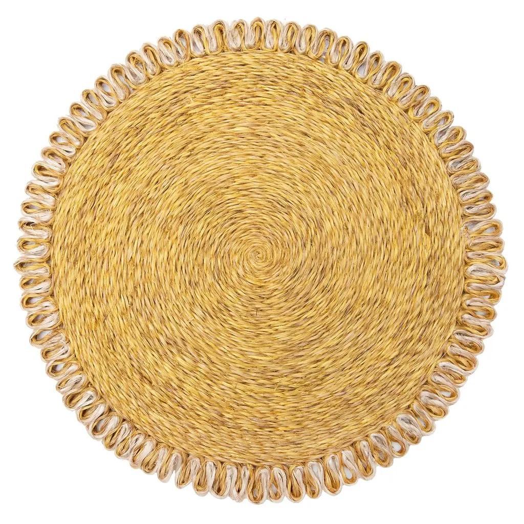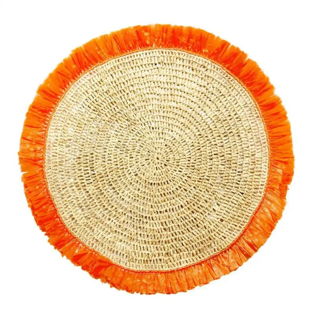 Experience the rustic elegance of these Rustic Raffia Fringe Placemats. These placemats beautifully blend natural raffia fibers with a touch of rustic charm, enhanced by the fringe detailing. Crafted with meticulous care, they offer not only an appealing visual texture but also a protective layer for your table, guarding it against spills and scratches. Whether you're hosting a cozy family dinner or a casual gathering with friends, these placemats seamlessly enhance your table setting. Elevate your table with the organic beauty of Rustic Raffia Fringe Placemats.