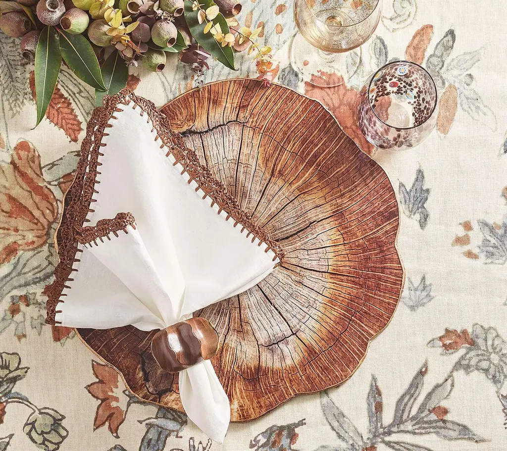 Our wood slice-inspired Cedar Placemats combine rustic charm with ease of use--they offer the look of a wooden placemat but are made of acrylic, so they simply wipe clean. Perfect for a nature-themed lunch or supper, they deliver just the right amount of cozy country charm to the table and feature a cork backing.