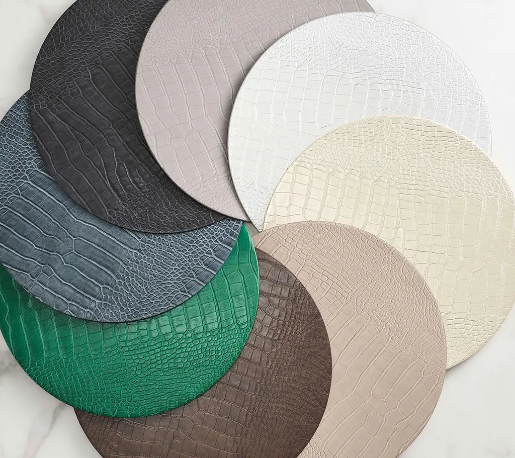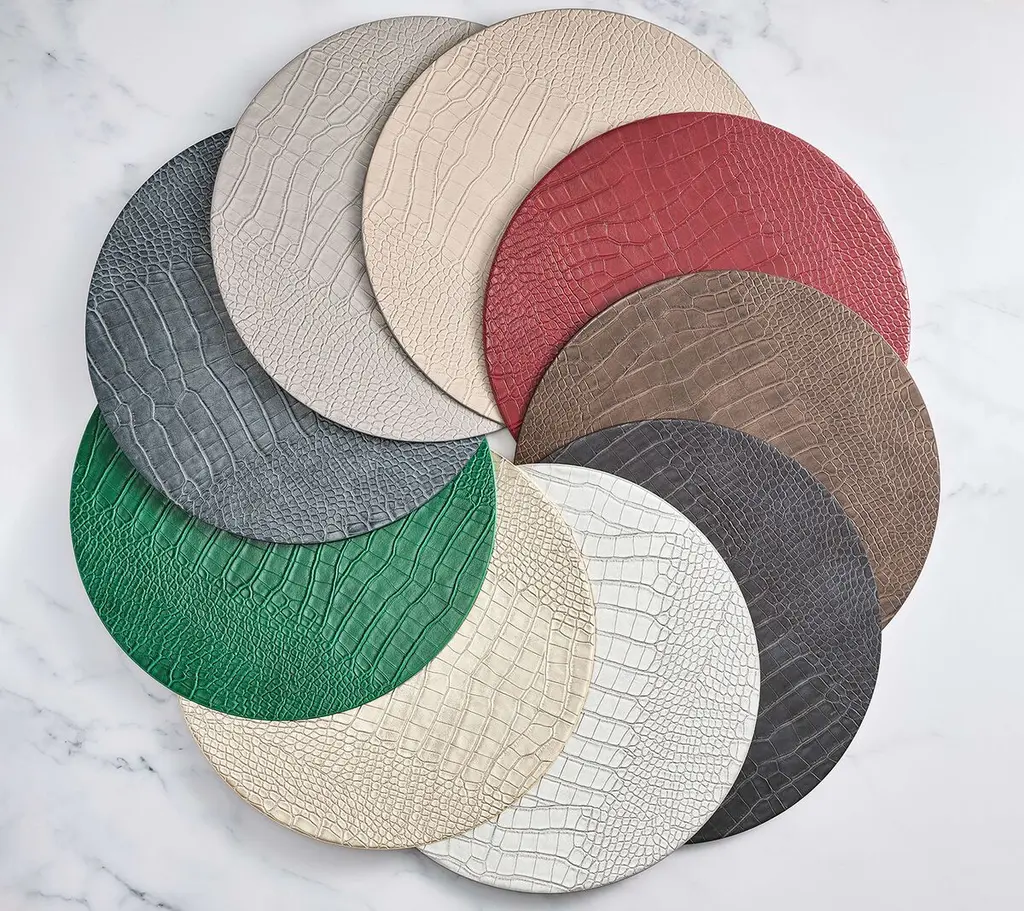 The embossed faux Croco Placemats are the perfect staple for your table. The organic yet sophisticated crocodile pattern will complete any festive table. Perfect for entertaining, these placemats are easy to care for; simply wipe them down before storing them.