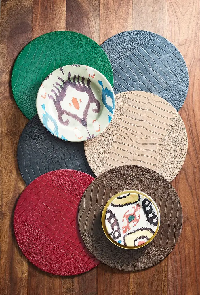 The embossed faux Croco Placemats are the perfect staple for your table. The organic yet sophisticated crocodile pattern will complete any festive table. Perfect for entertaining, these placemats are easy to care for; simply wipe them down before storing them.