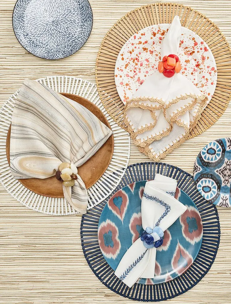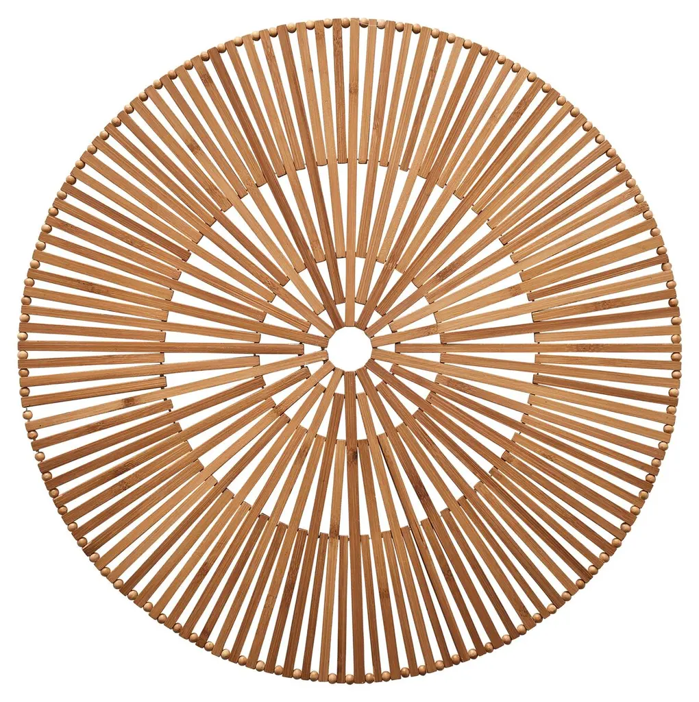 The geometric pattern of the painted, hand-cut bamboo slats in the Spoke Placemat is a nod to the Eastern world. Arranged by hand, the finished product is the perfect blending of clean, refined lines and natural, organic elements.