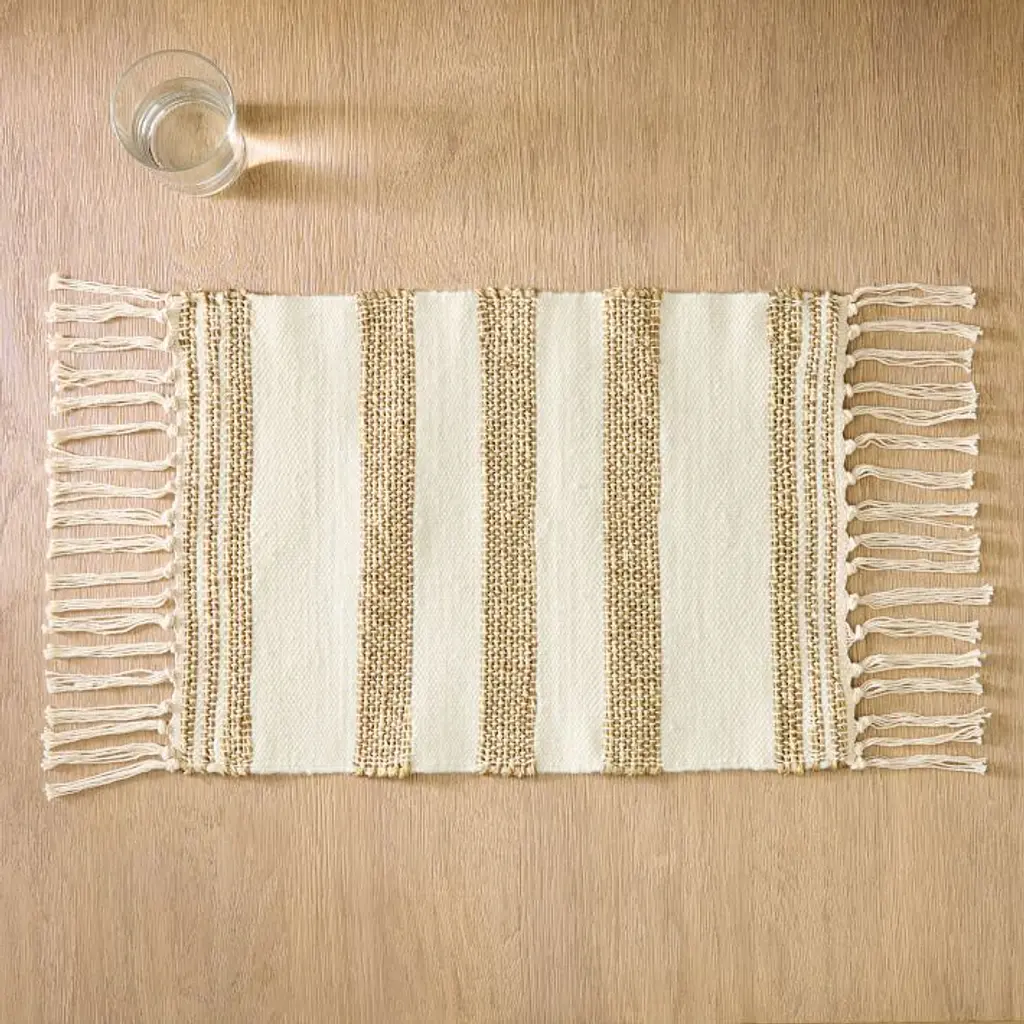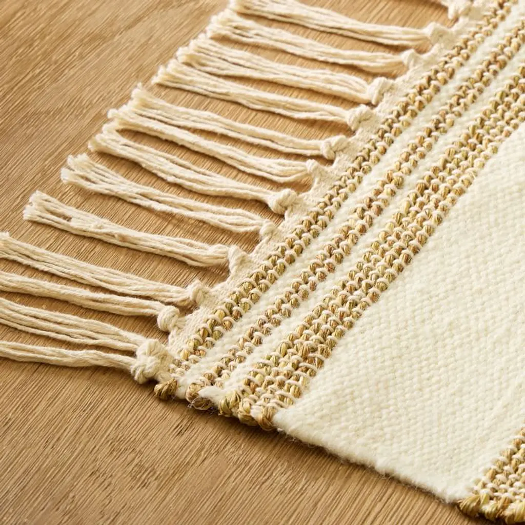 14.5"w x 19.5"l. Handwoven wool, jute and cotton. Made in a Fair Trade Certified™ factory, empowering workers who made it. We are a proud member of the Better Cotton Initiative. BCI Cotton is not physically traceable to final products. Sold as a set of 4. Made in India.