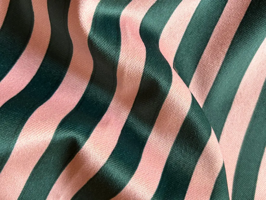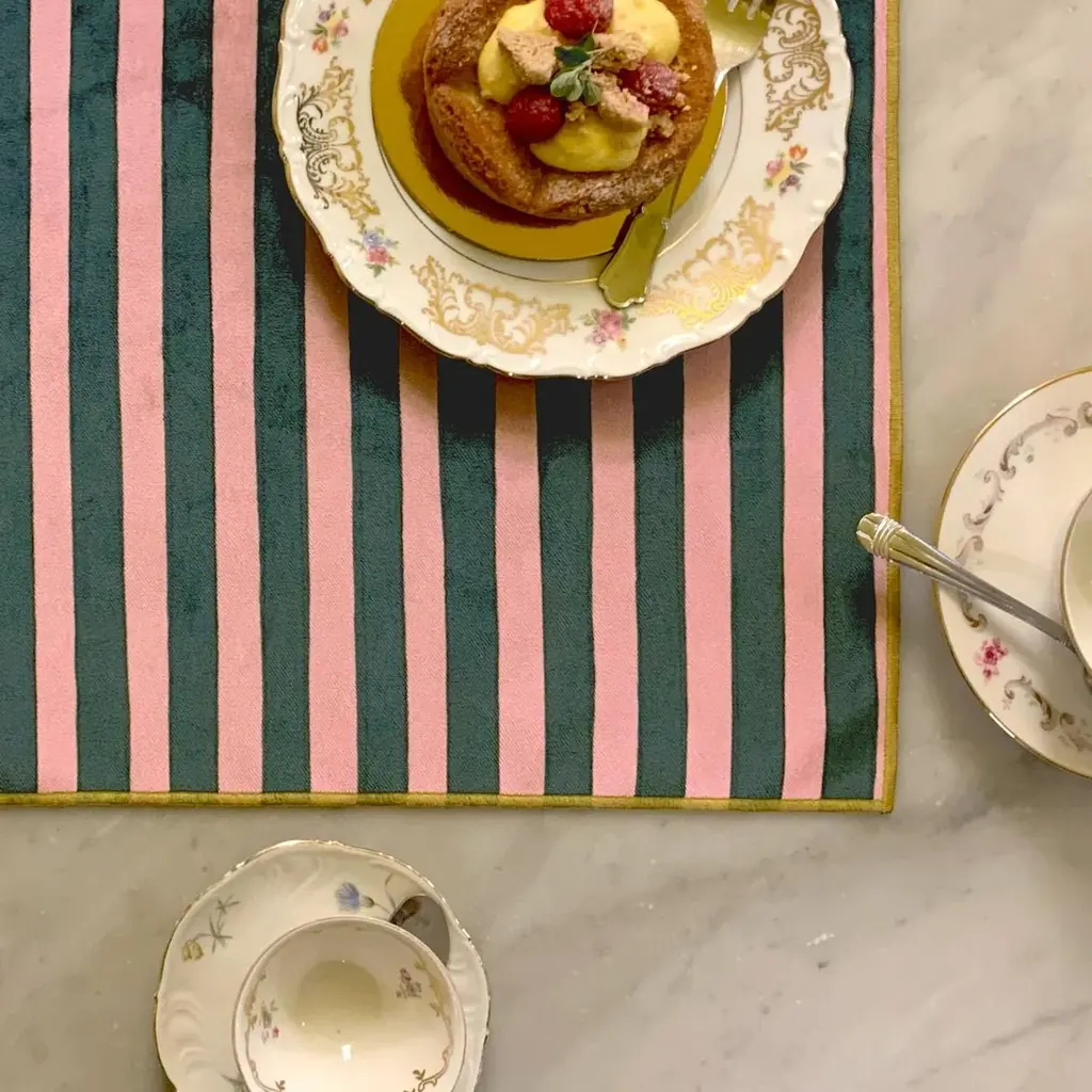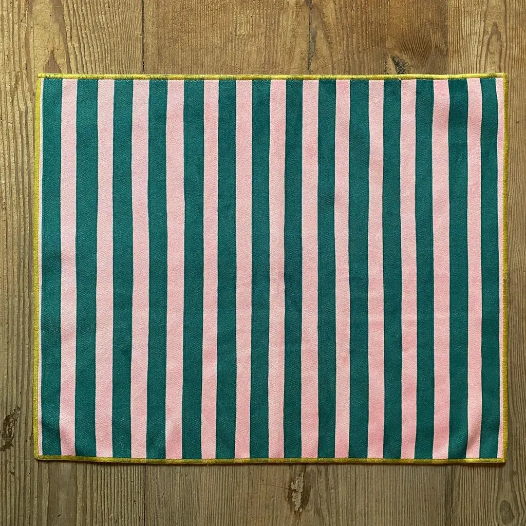Set 4 Green And Pink Striped Polyester Velvet American Placemats