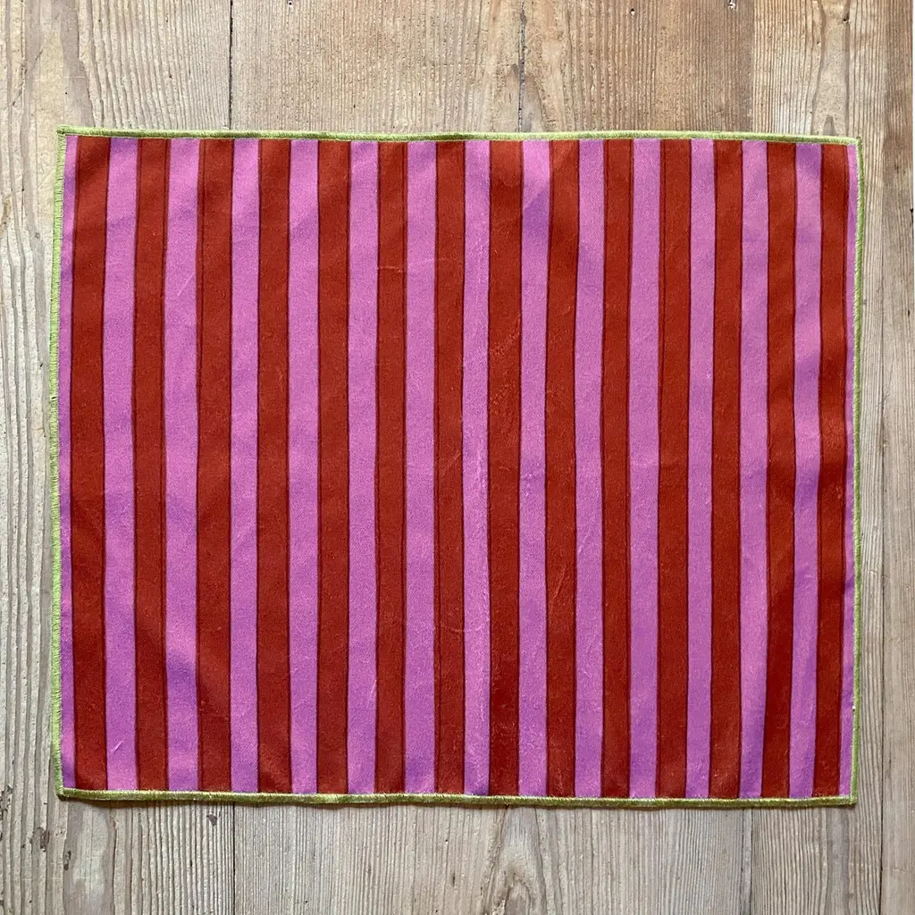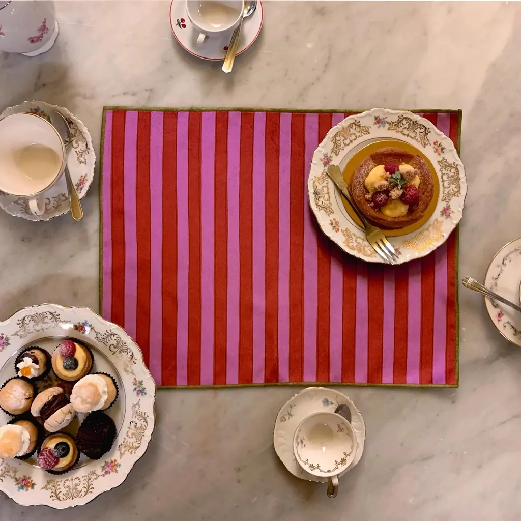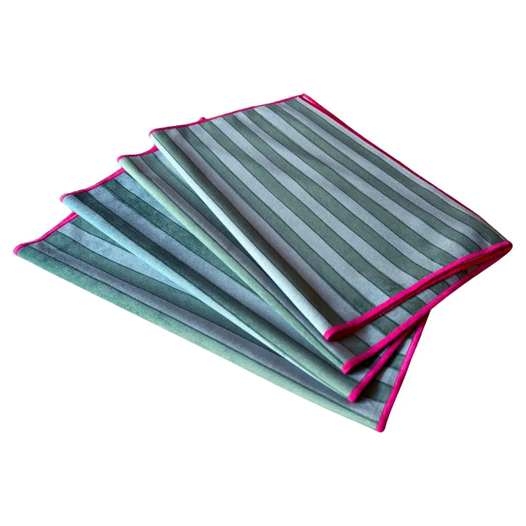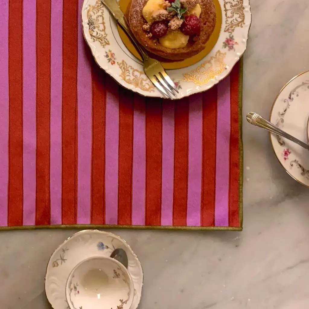 Set 4 Pink And Red Striped Polyester Velvet American Placemats
