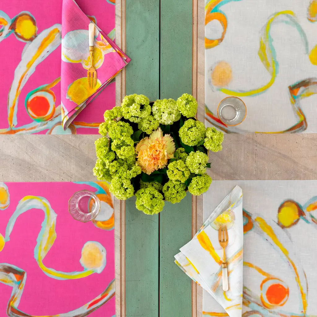 Set Of 2 Light Flux Placemats And Napkins In Pink