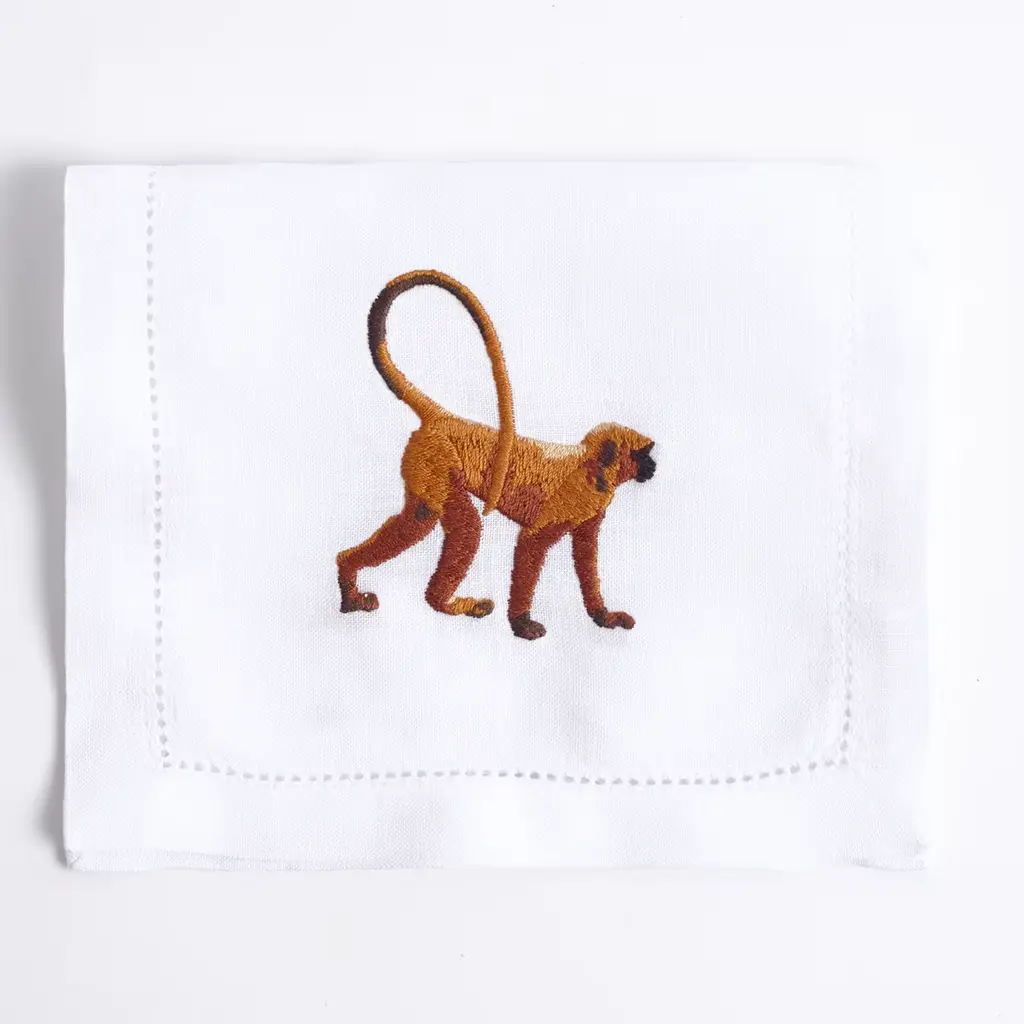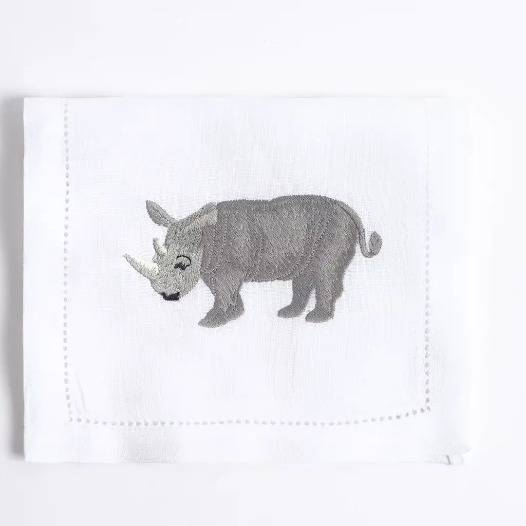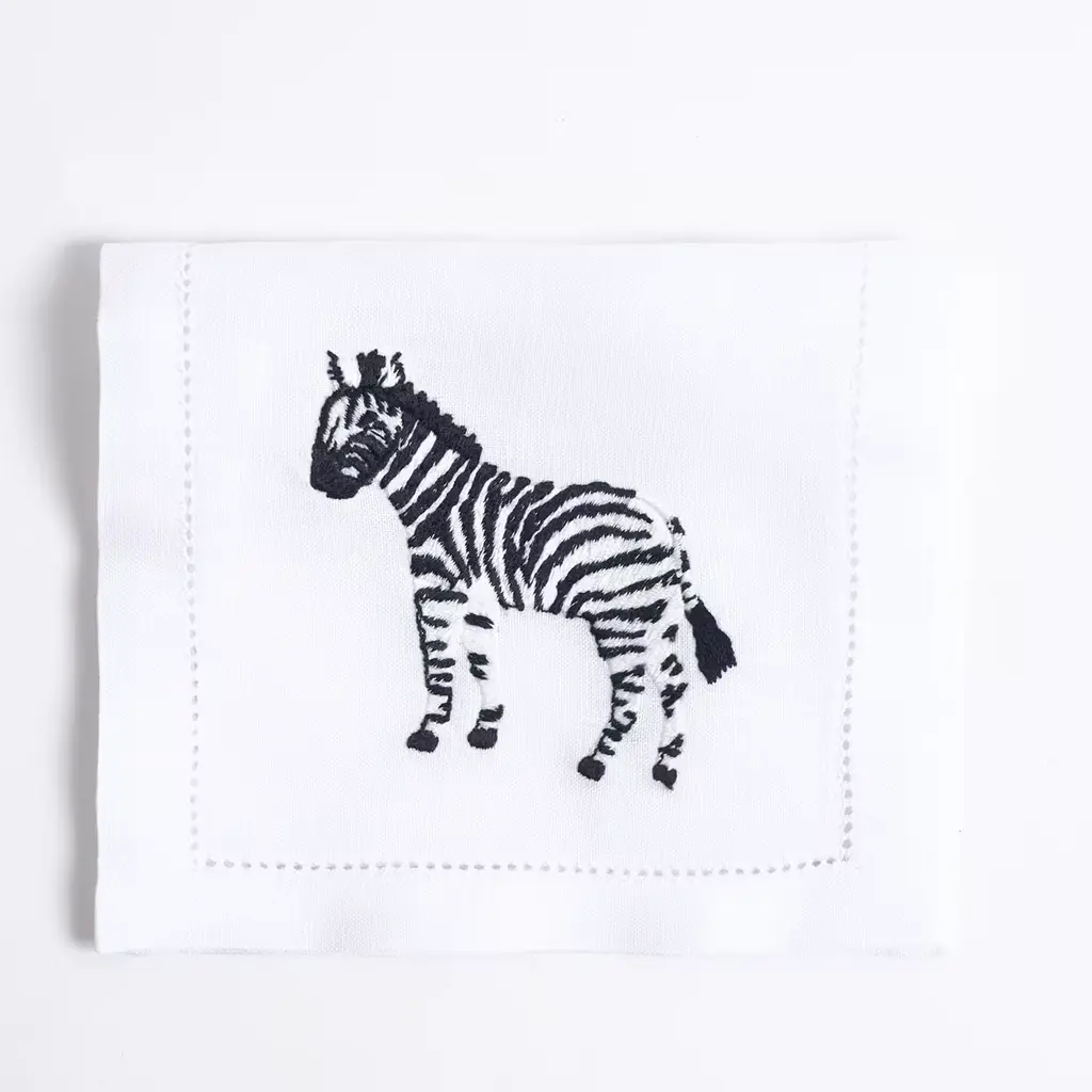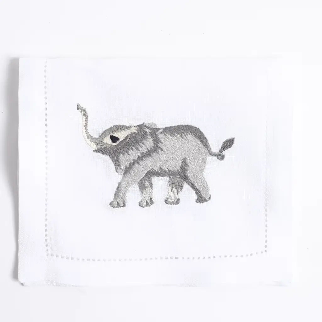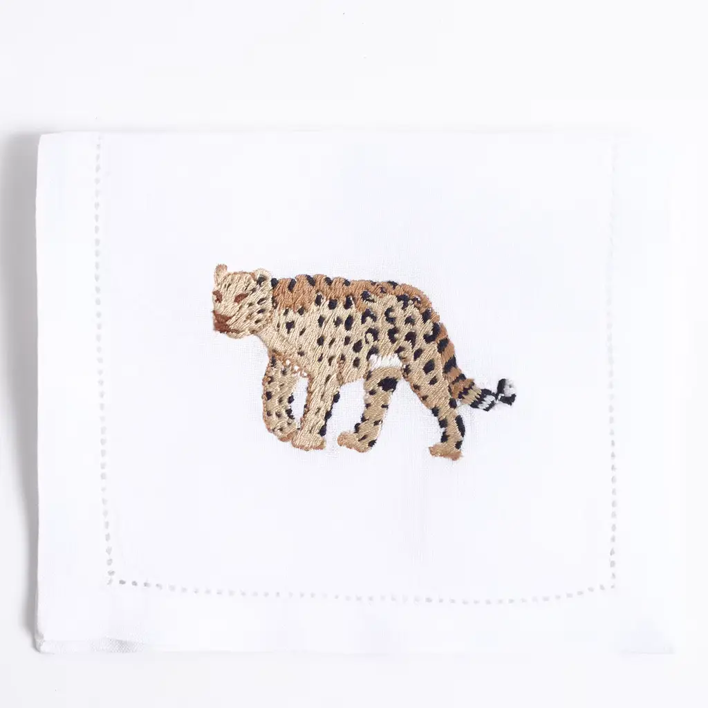This set of 6 rectangular embroidered drink placemats, each measuring 15x26 cm, brings the spirit of the African savanna to any table. Featuring elegant designs of elephants, lions, and giraffes, these placemats are crafted from luxurious Italian linen. They add a touch of wild beauty to any setting, perfect for safari-themed décor or as a unique gift for wildlife lovers. Each piece reflects Maison Alia's signature craftsmanship and timeless style.