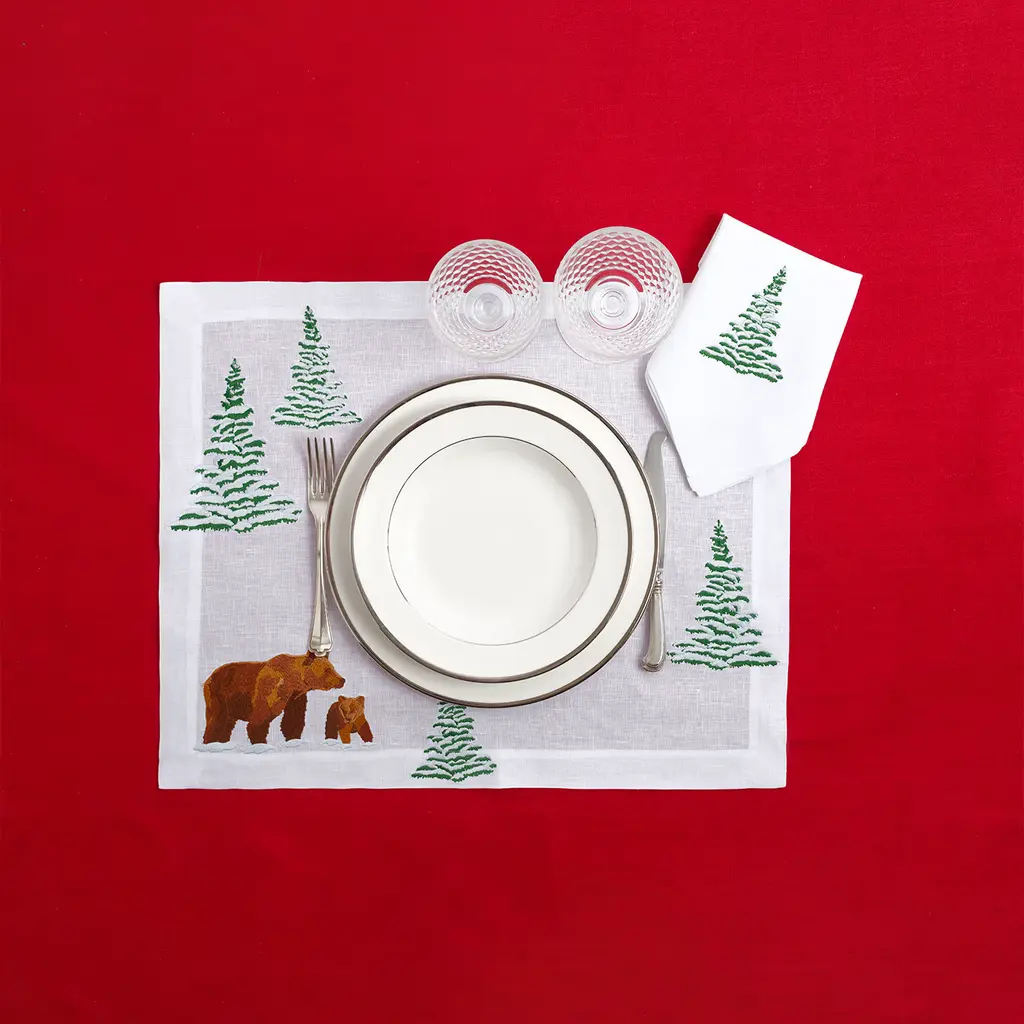 Rectangular embroidered placemat set, including one placemat and one napkin (45x45cm), crafted from high-quality linen. Perfect for everyday use or special occasions, these placemats bring a touch of rustic elegance to any table. Featuring charming mountain animal designs, they are ideal for mountain lodges, cabin-inspired décor, or as a thoughtful gift for nature lovers. Reflecting Maison Alia’s dedication to fine craftsmanship, these placemats add timeless beauty to the table setting.