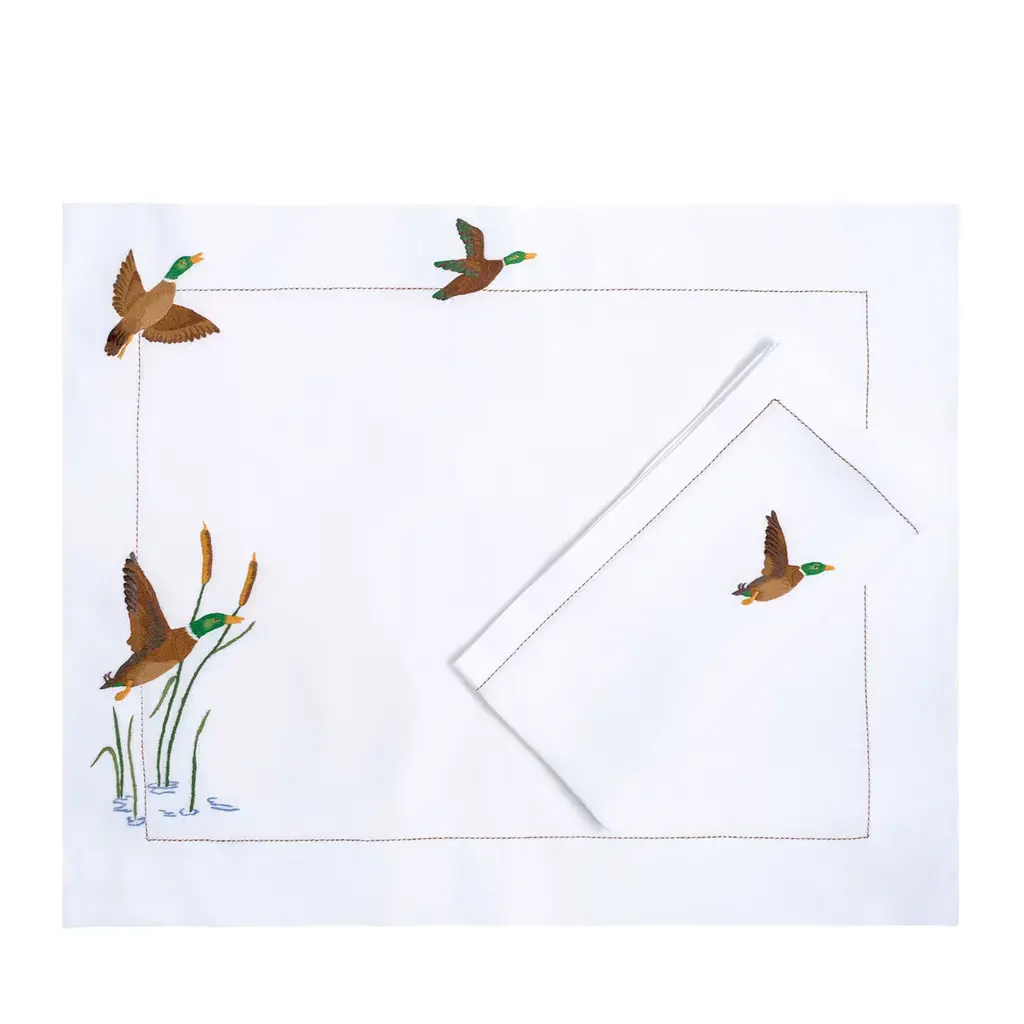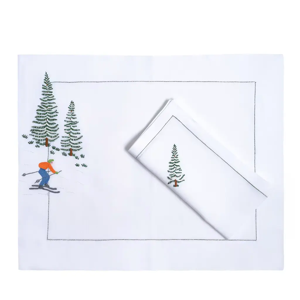 Set Of Ski Hand Embroidered Placemat And Napkin #1