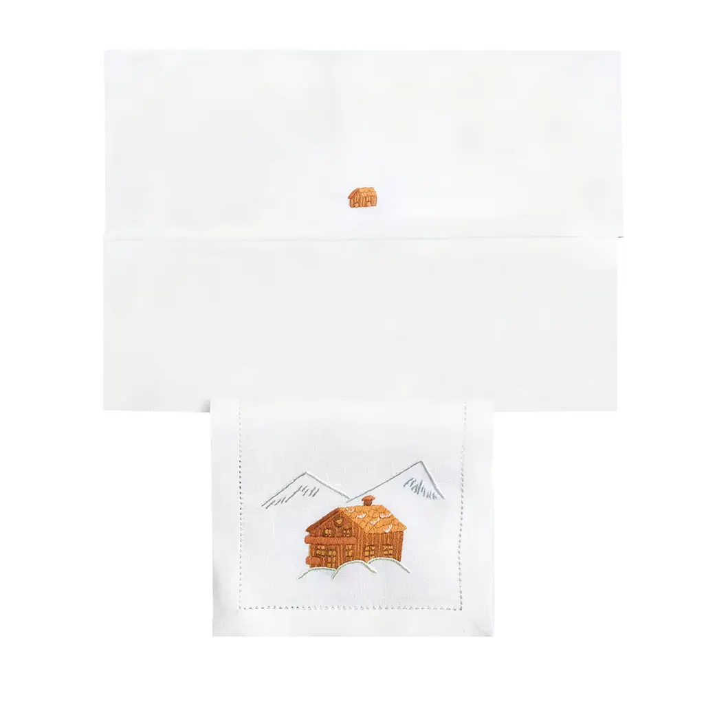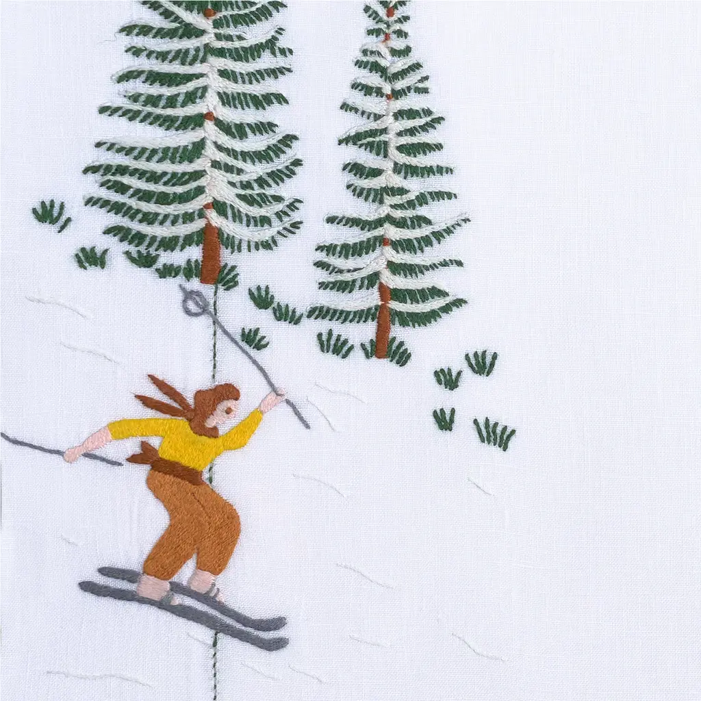 This rectangular hand-embroidered placemat set includes one placemat and one napkin (50x50cm), crafted from 100% Italian linen. The delicate ski design is meticulously embroidered by hand using high-quality cotton thread. Perfect for bringing the cozy elegance of the slopes to any dining table, this set is ideal for winter dinners or special alpine-themed gatherings, combining functionality with a refined aesthetic.