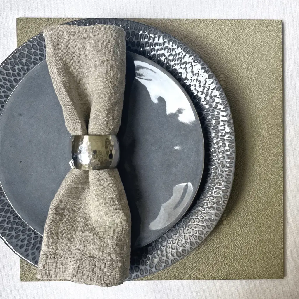 Handcrafted by skilled artisans our signature square placemats in faux shagreen natural are inspired by soft, natural hues. Through meticulous burnishing and polishing, the natural patina of the material is brought to life making each mat truly unique.We have carefully curated a range which works perfectly when pairing different finishes together to create a unique table setting, there are many playful combinations within the range making it adaptable and fun. Whether choosing classic square placemats or our larger serving mat/grand placemat, we offer unique solutions for ever table setting.Pair with our matching double coaster for the ultimate luxury dining experience.