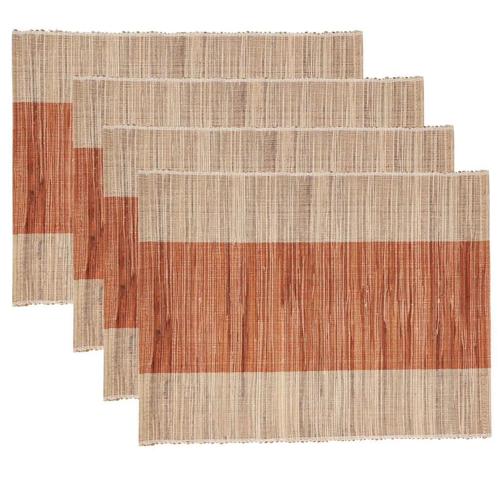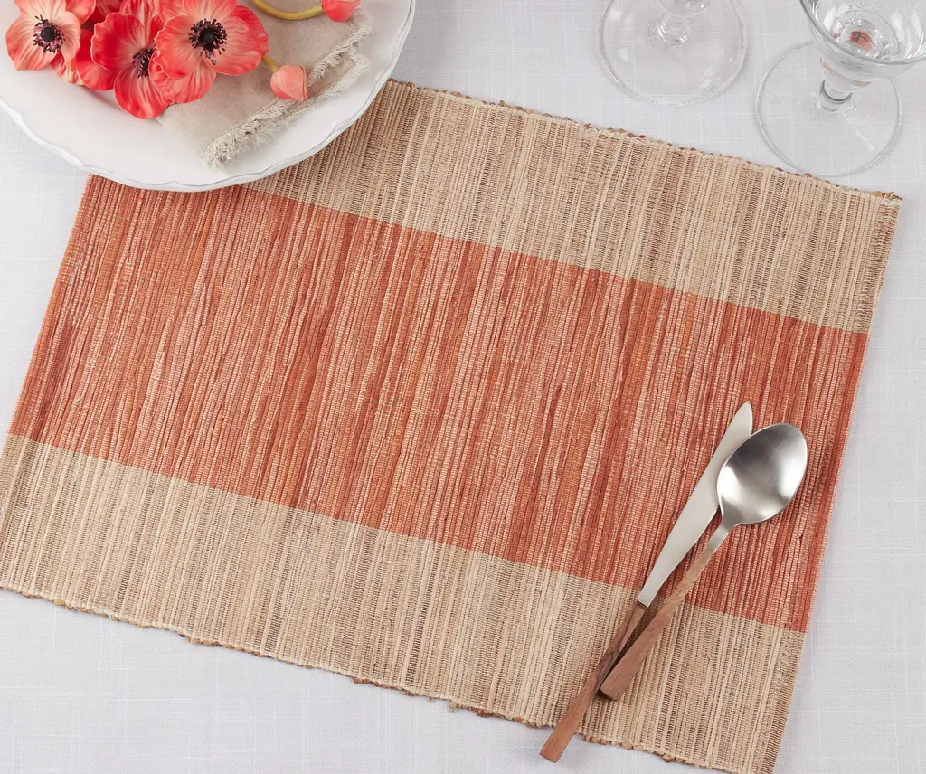 Update your tabletop with this stylish set of two-tone Shimmering Banded Placemats. The subtle shimmer adds the just the right note of charm, while the striped design brings contrast and depth to the dinner table. You can pair the set with the matching table runner for a refined finishing touch.