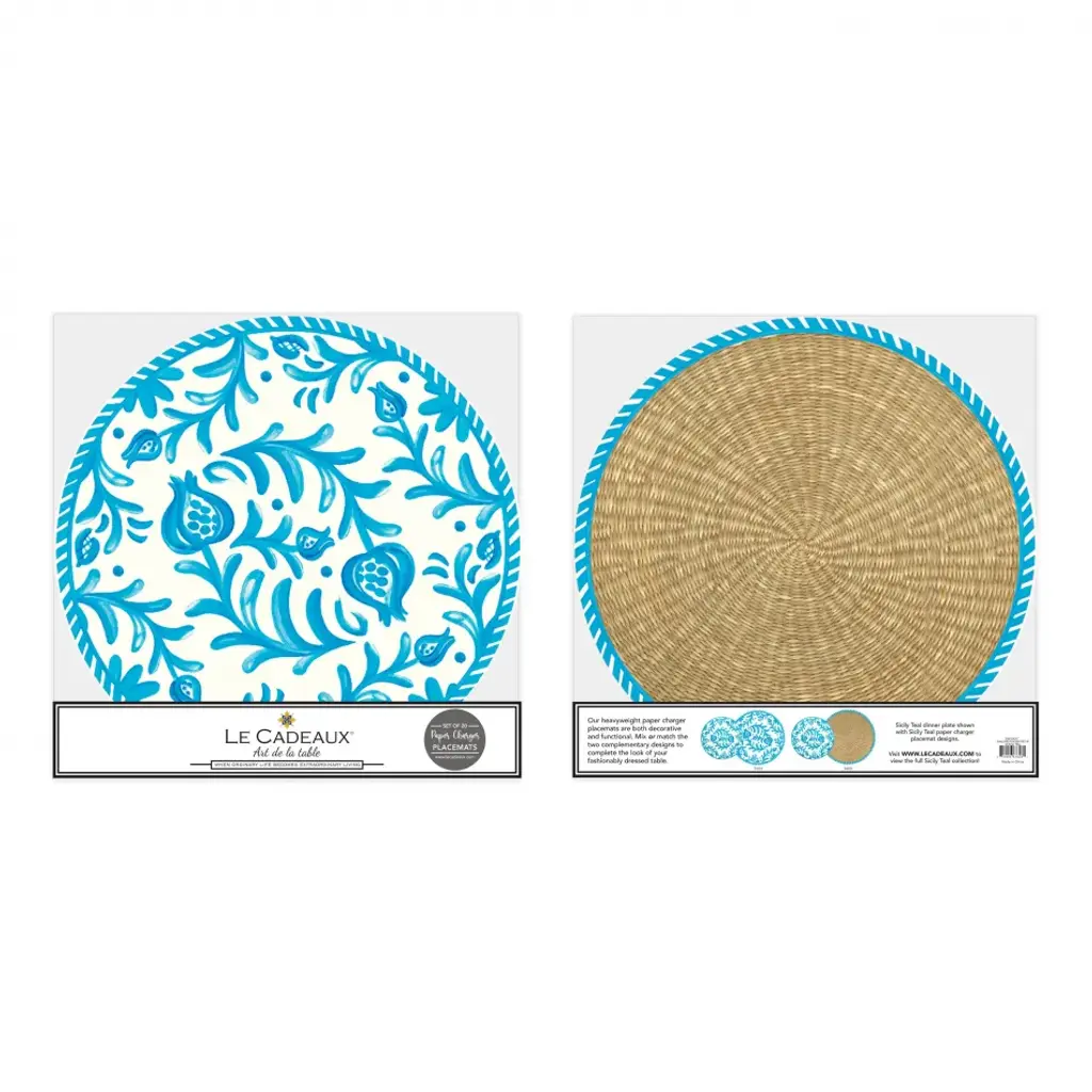 Sicily Teal Round Paper Charger Placemat 15" (Pack Of 20)