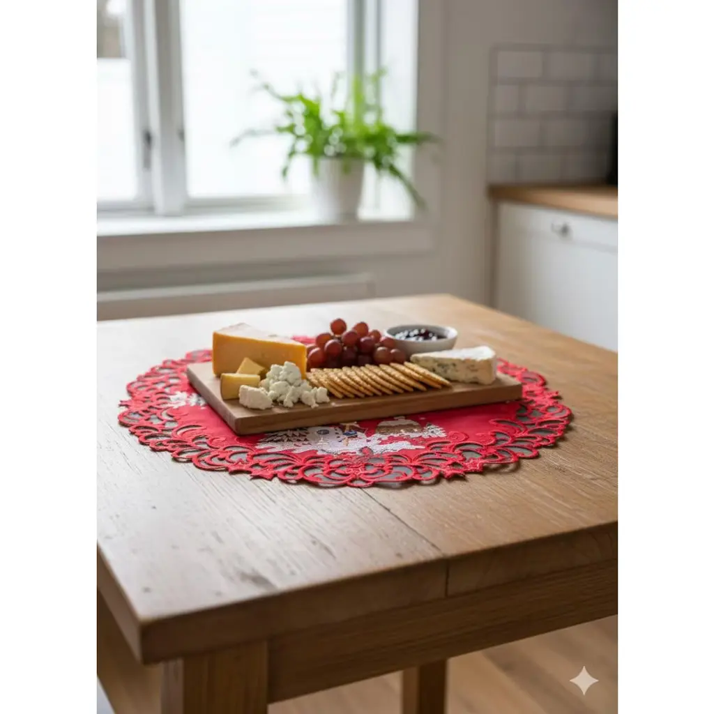 Snow Man Embroidered Cutwork Round Placemat, 15-inch Diameter