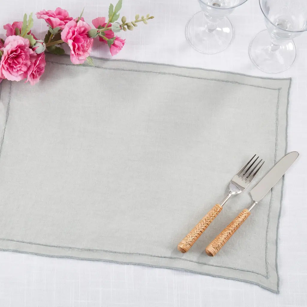 Protect and style your table with the Stonewashed Overlock Edge Placemats. Functional and elegant, it's the perfect addition to elevate your dining experience. Beautifully crafted to complement a variety of styles and settings, it's a true standout. An ideal choice for gifting or adding a sophisticated flair to your space.