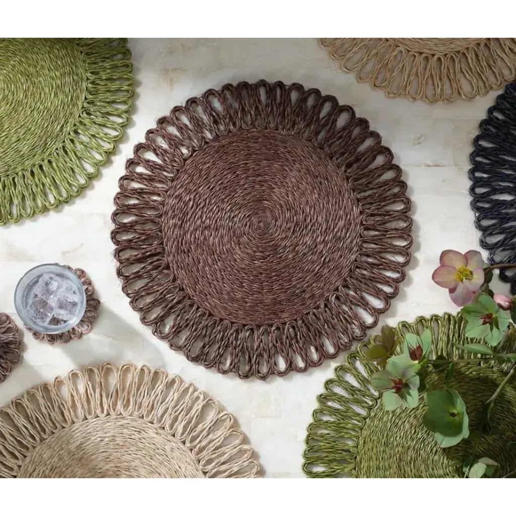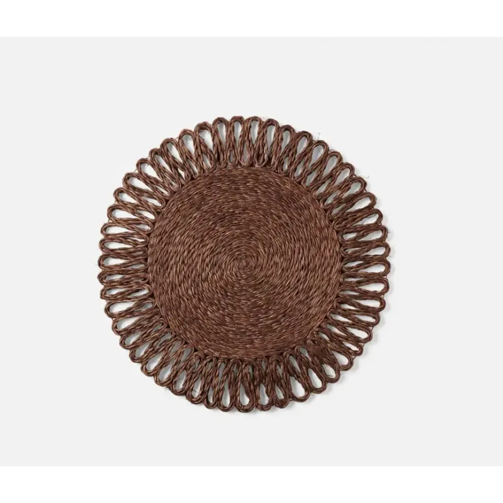 Teigan’s floral-shaped abaca placemats are handcrafted in dramatic moody neutrals. Now available in Brown! Blue Pheasant's products are handmade with care by artisans using natural materials. They are not mass produced, so variation between products should be expected, and this is why we love them! It is these irregularities that makes Blue Pheasant what it is—a special brand whose collections are distinctly handmade, full of charm and originality you’ll never find in machine-made products.