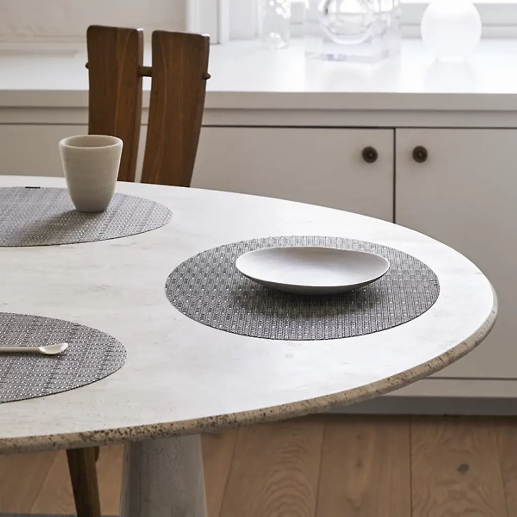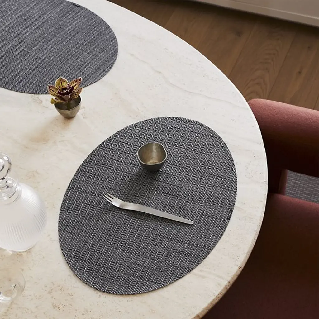 Elevate the décor of your dining spaces with the clean and welcoming silhouette of the Thatch Oval Placemat from Chilewich. The perfect shape and size for dining in peace, the beautiful finishes of this placemat are made from terrastrand yarns that contain 25% renewable vegetable content, allowing it to blend with a range of existing styles.