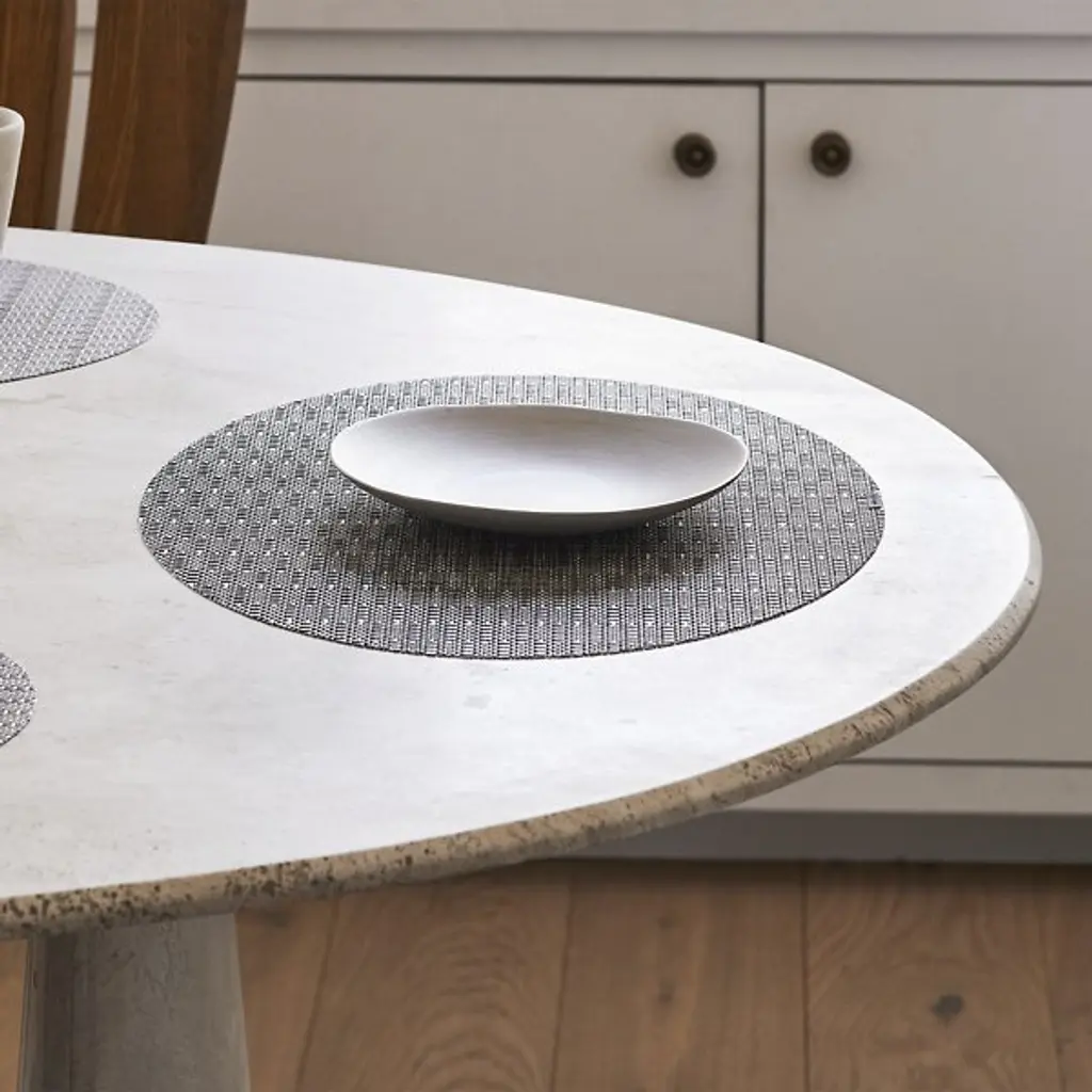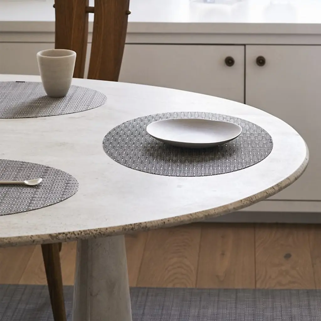 Elevate the décor of your dining spaces with the clean and welcoming silhouette of the Thatch Oval Placemat from Chilewich. The perfect shape and size for dining in peace, the beautiful finishes of this placemat are made from terrastrand yarns that contain 25% renewable vegetable content, allowing it to blend with a range of existing styles.