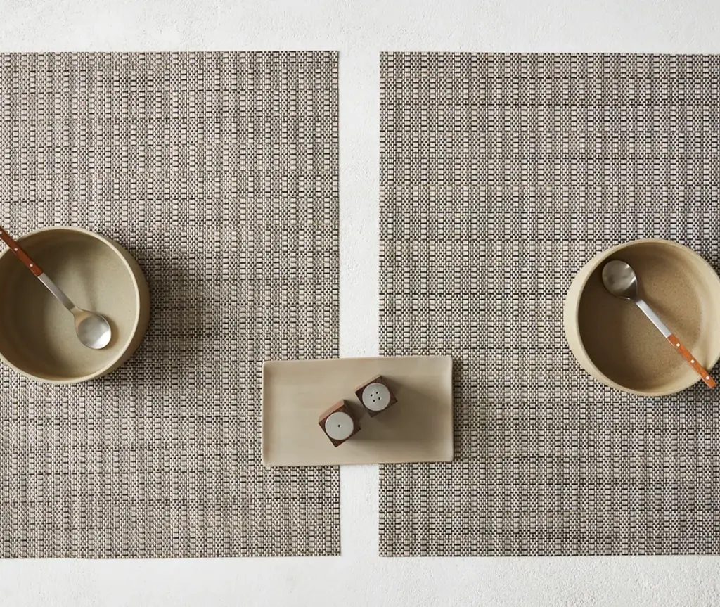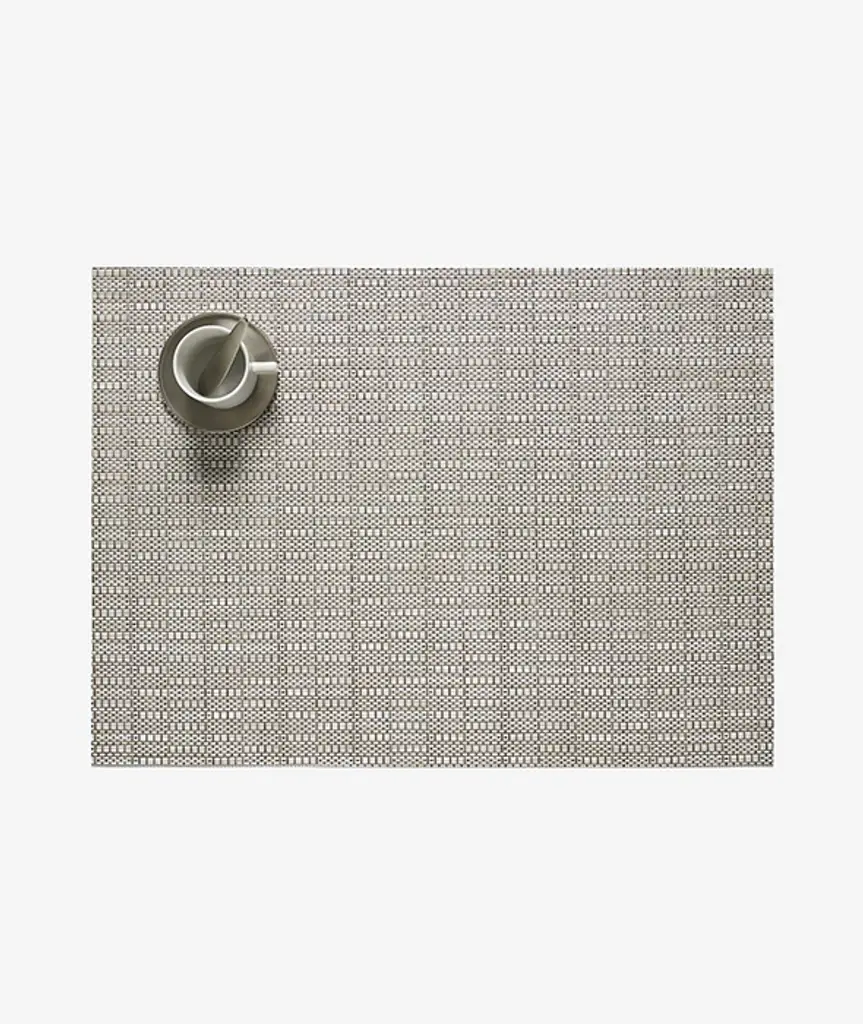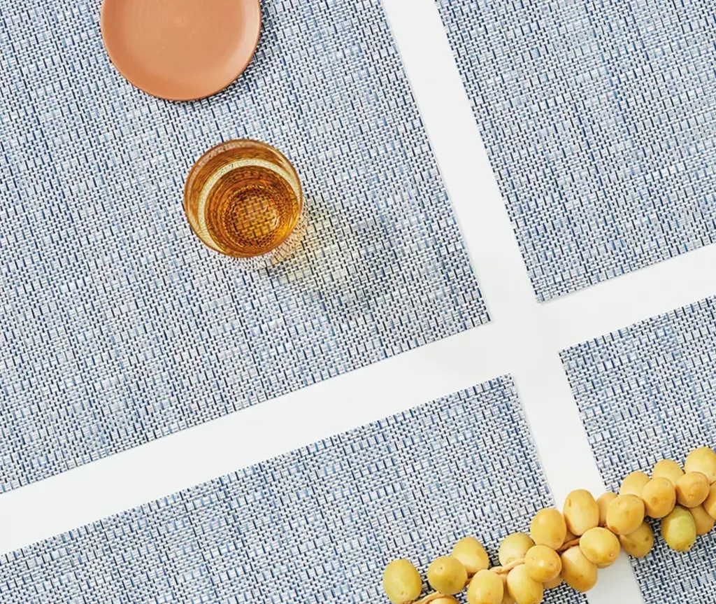 A timeless new texture, Thatch reveals the power of subtle shifts in color to create a richly patterned surface. This quiet yet distinctive weave is designed to complement a broad range of styles and color palettes. TO CLEAN: Simply wipe with soap, water and a soft sponge or cloth. Scrub stubborn stains with a soft bristle-brush and a bleach-based cleanser. For over a decade, New York based designer Sandy Chilewich has been creating original and innovative vinyl products for the home. Her woven, tufted, molded and spun textiles are available in a range of vibrant and neutral hues that have become synonymous with the Chilewich brand name.