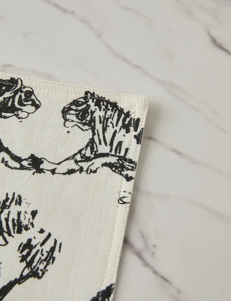 Add a touch of vintage charm to dining with these placemats. Originally drawn by Sarah's son and styled into an intricate motif, this tiger print brings graphic intrigue to your tablescape. These table linens are from our exclusive Sarah Sherman Samuel collaboration and feature all the trademarks of her warm, edited style.