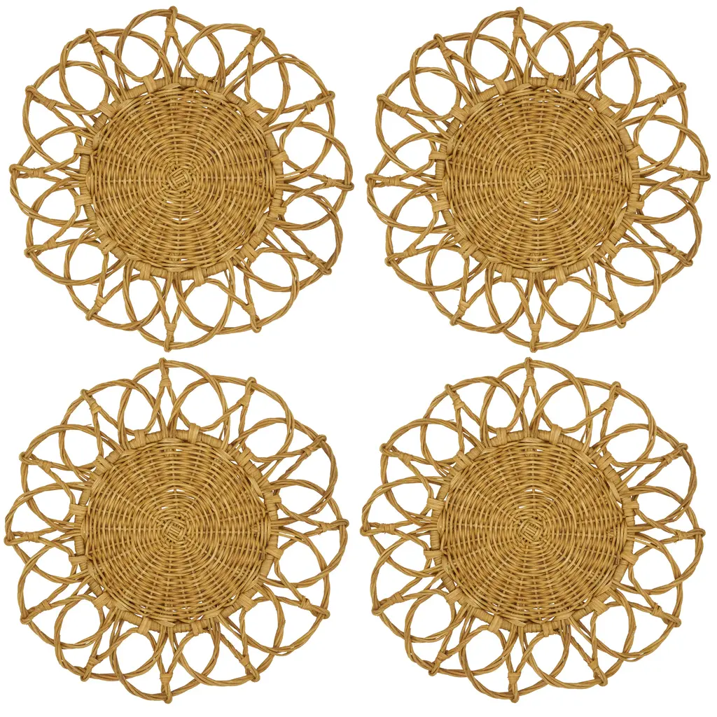 Perfect for everyday use or casual dining, this lovely set of Twisted Rattan Table Placemats is highly versatile and a great addition to both indoors and outdoors table settings. With a natural, yet stylish design, this durable set is quite easy to pair with a wide range of tableware and linens.