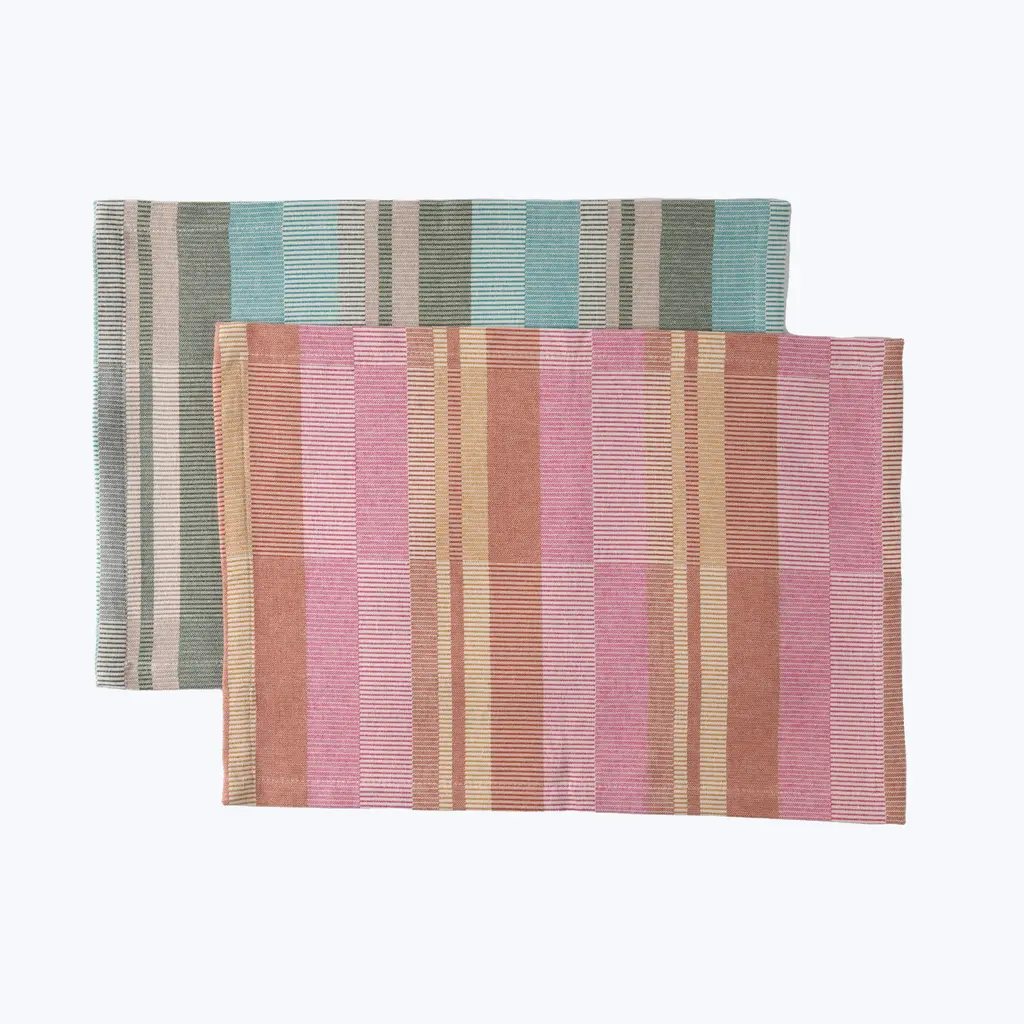 Add enchanting color to your table with the Viola Placemat by Johanna Howard Home. Crafted in sustainable Better Cotton, the Viola Placemat features a captivating, hand-woven-like texture. Each placemat is finished with a mitered corner stitch. Made in Portugal. Available in Aqua/Green and Pink/Spice editions.