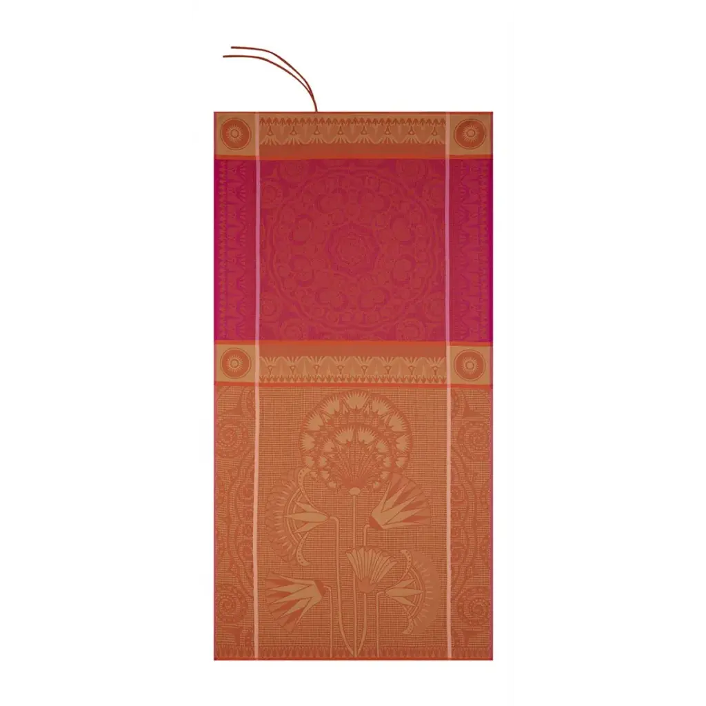 A tablecloth with an eclectic style and warm, earthy colors that will dress up your table in the colors of summer. Its refinement is revealed through the subtly embroidered flowers and acanthus leaves that intermingle to compose each tray. All this is framed by a wide border whose pattern is inspired by ceramics with a delicacy close to lace reminiscent of the tiles of Ottoman palaces. Complete your table with our napkins in tissue or paper! The photographs in the catalog are as accurate as possible but cannot ensure a perfect similarity with the product sold, especially with regard to colors. Since 1888, Le Jacquard Francais has created a collection of table linens without equal. Weavers, warp beamers, knotters and other specialists work in harmony to perfect the weaves and colors of all of their linens. Classic Le Jacquard Francais linens are characterized by using framed woven patterns to create timeless tablecloths, napkins, placemats and table runners that will beautify your tables for many years. Le Jacquard Francais coated tablecloths are made of 100% cotton weave with long fibers. They are waterproof and stain-resistant thanks to a patented and exclusive acrylic coating that withstands washing. Newly introduced, LJF by Le Jacquard Francais is a more casual line of contemporary looks that mixes colors and patterns and plays with graphics. Practical and easy to use, these tablecloths will stand up to frequent use in the kitchen or patio.