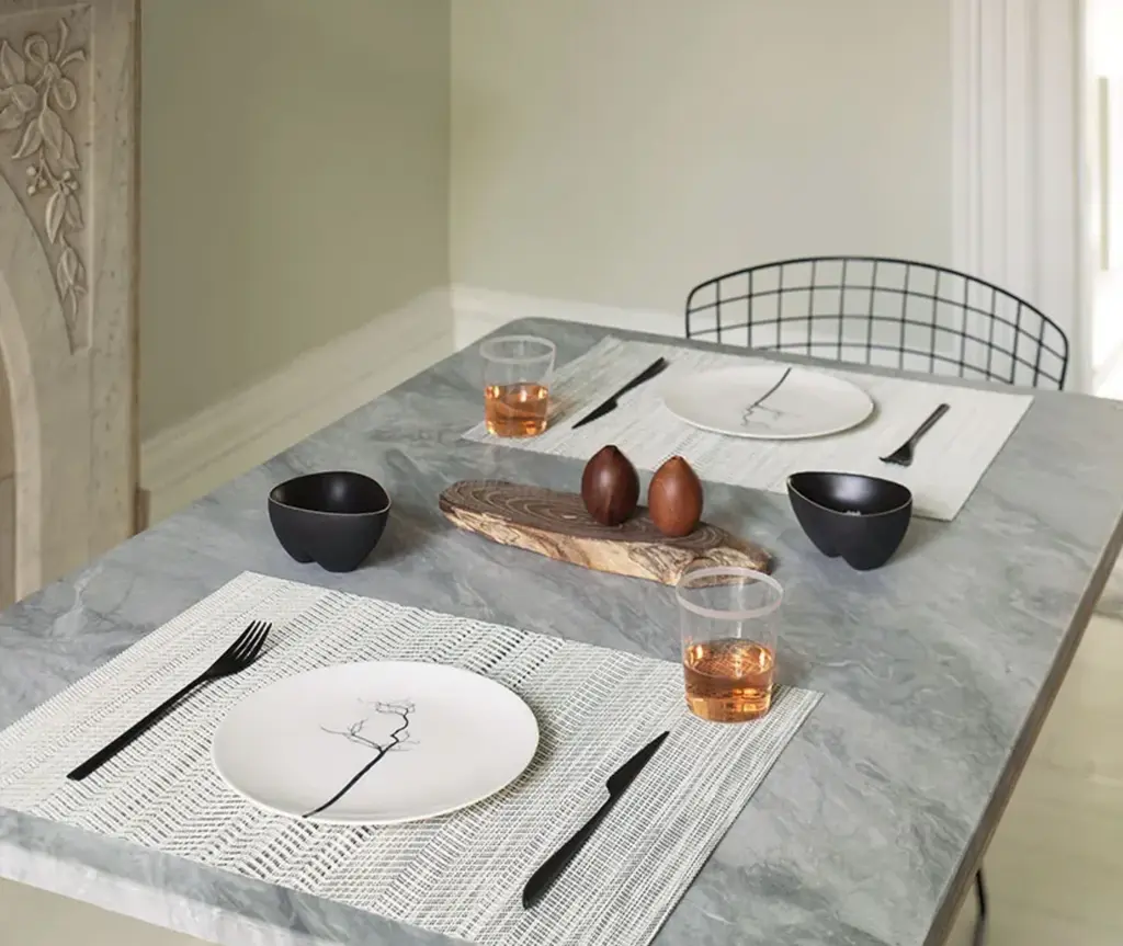 Based on a traditional twill construction, Wave achieves its striking ombré effect by gradually shifting weaves. Our signature bi-color extruded yarns are woven in such a unique way that the color seems to appear and disappear, breaking up the undulating lines. TO CLEAN: Simply wipe with soap, water and a soft sponge or cloth. Scrub stubborn stains with a soft bristle-brush and a bleach-based cleanser. For over a decade, New York based designer Sandy Chilewich has been creating original and innovative vinyl products for the home. Her woven, tufted, molded and spun textiles are available in a range of vibrant and neutral hues that have become synonymous with the Chilewich brand name.
