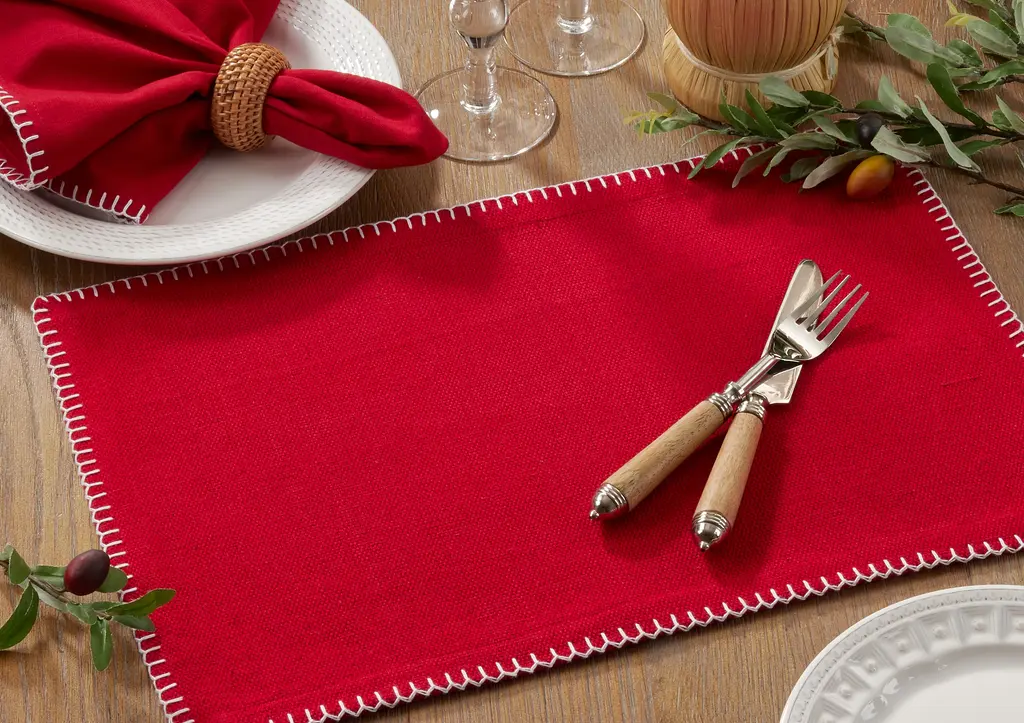 Whip Stitched Design Placemat, Set Of 4 - Red