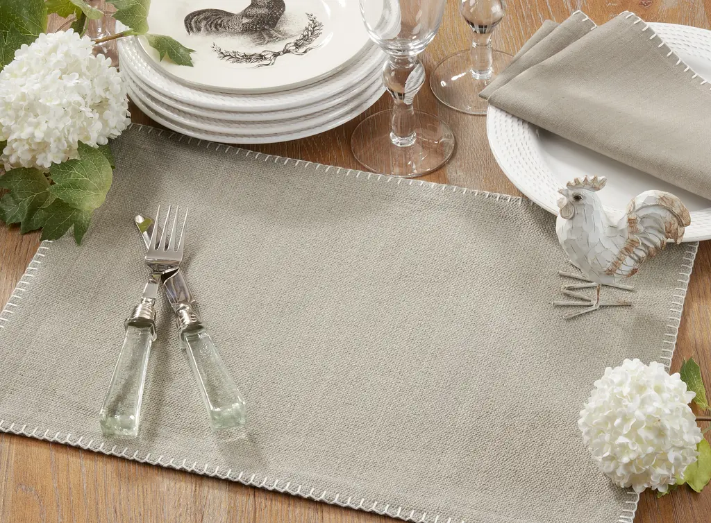 This lovely set of Whip Stitched Design Placemats helps set the perfect backdrop for each and every one of your place settings. The design features a solid color, which makes the placemats easy to pair with a wide range of tableware. If you want to create a coordinated look, then pair with matching table runner.