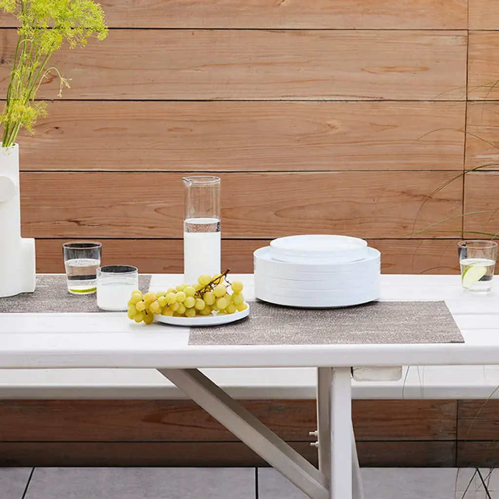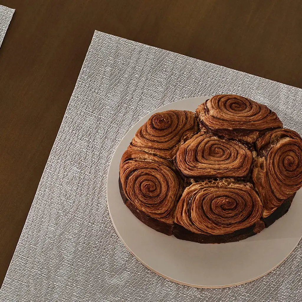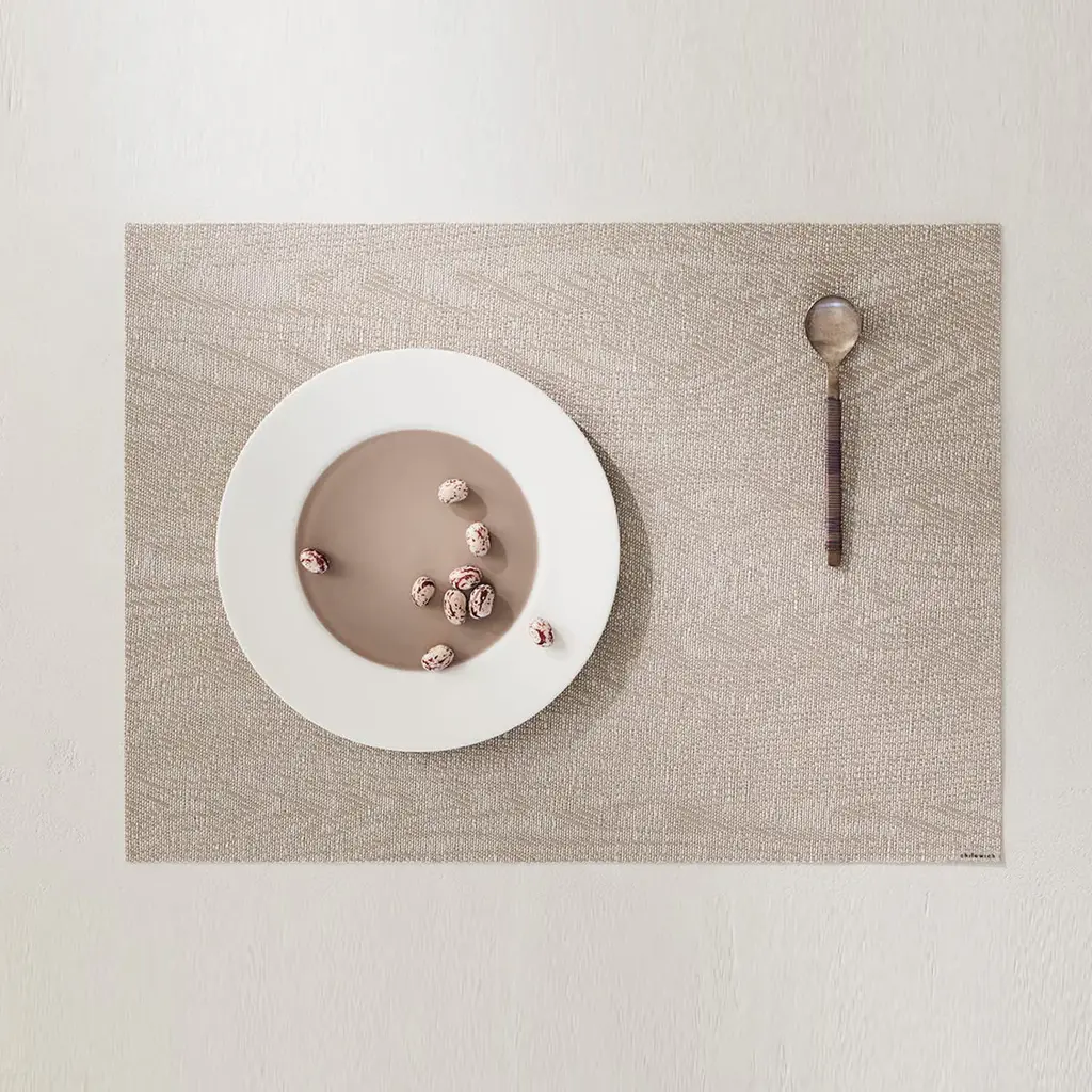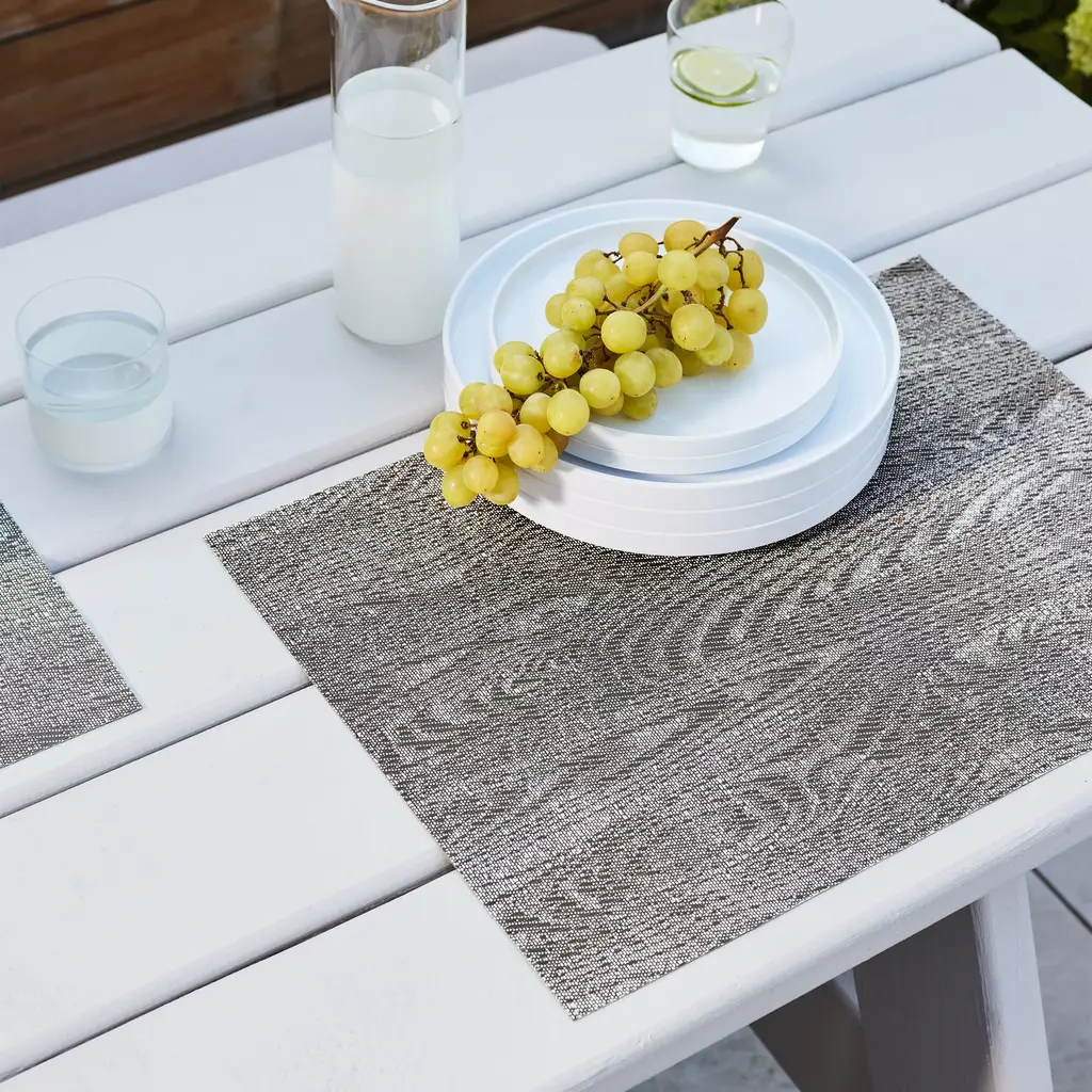 A new voice in Chilewich's ongoing conversation with faux bois—the centuries-old art and craft of imitating wood—Woodgrain gains its distinctive look from faithfully recreated patterns originally formed by the burls, knots, growth rings, and other natural variations that make each piece of wood unique. This weave was developed with a large, thoughtfully scaled repeat to enhance the continuity and organic quality of the tonal texture. Suitable for indoor and outdoor use. Made in the USA with TerraStrand® and Microban®. Free of phthalates. Features