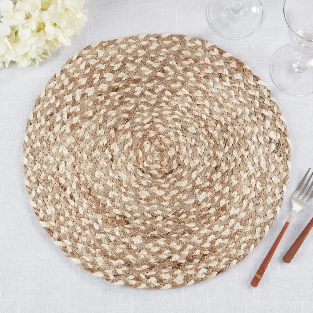 This beautiful set of Woven Jute Placemats give a stylish, contemporary look to your tabletop. Featuring a natural look and feel, they are ideal to use on many occasions. They're also easy to pair with both solid and patterned tableware.