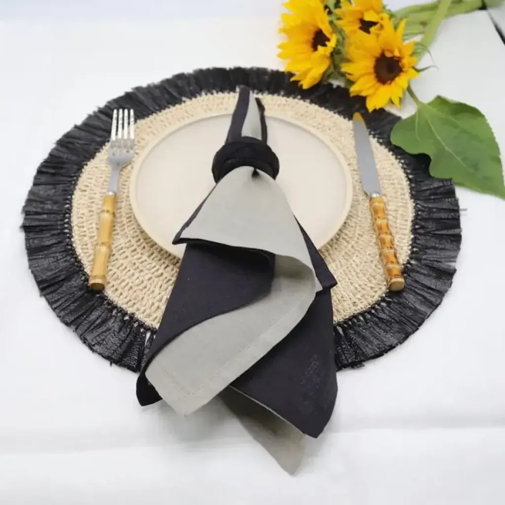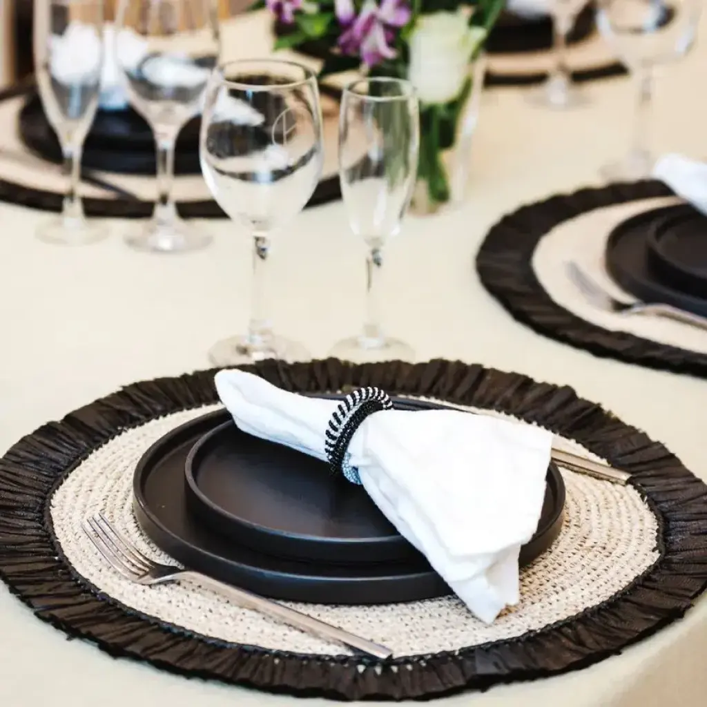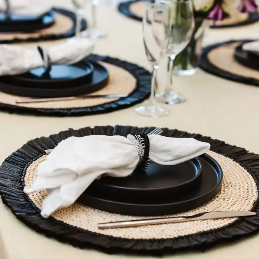 Woven Rattan Fringes Black Rattan 16" Round Placemat