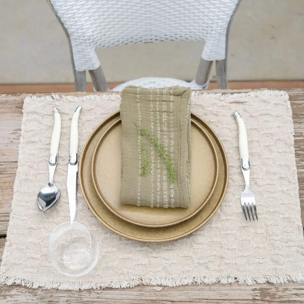 Elevate every meal with the Wren Placemat (Set of 4) from Pom Pom At Home. Its charming wavy pattern and delicate frayed edges add a subtle touch of style, transforming your table into a welcoming space perfect for memorable dinner parties. Durable and stylish, these placemats help protect your surfaces while enhancing your dining experience. Highlights