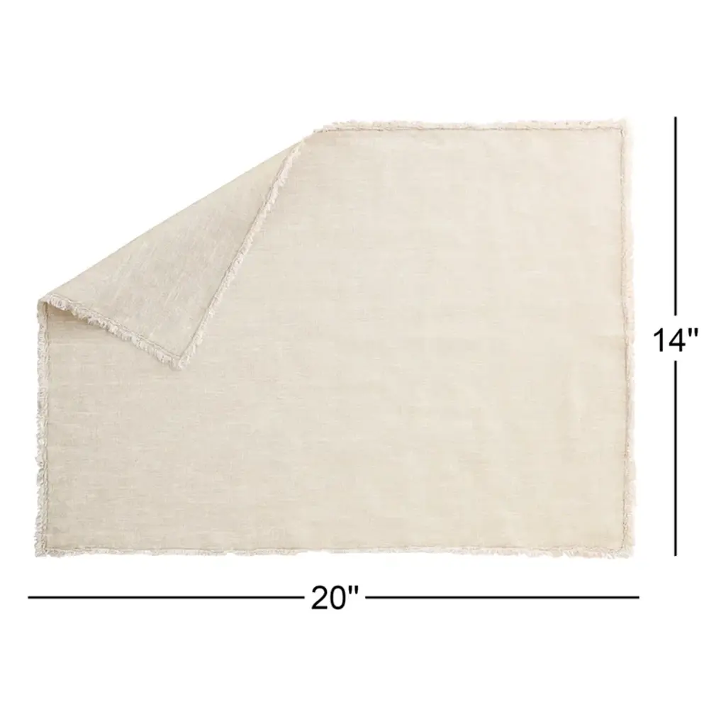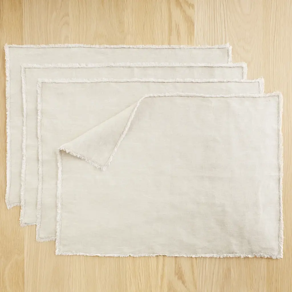This 4-piece placemat set brings a well-dressed look to your dining room or kitchen table. Each piece is crafted from crisp linen in a variety of neutral hues to choose from, and it features fringed edges for an extra tactile layer in your space. These mats have an understated, square silhouette, making them just the right accent piece for casual weeknight meals or a dinner party with friends. Plus, we love that this placemat set is iron-safe and cleans up easily in the washing machine.