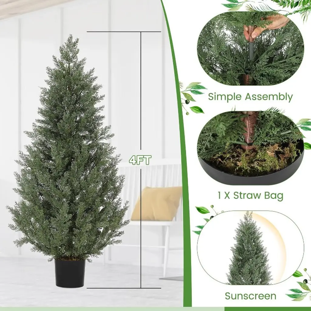 4 Ft Artificial Topiary Cedar Trees, 2 Pcs Artificial Plants Outdoor With Realistic Moss & Pot, Uv Rated Fake Plants, Without Light