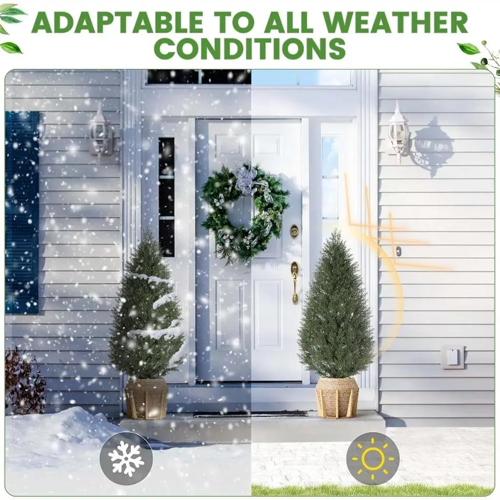 4 FT Artificial Topiary Cedar Trees, 2 PCS Artificial Plants Outdoor with Realistic Moss & Pot, UV Rated Fake Plants for Front Porch Decor, Living Room, artificial cedar tree is made of high-quality PE material, highly realistic, with delicate and realistic tree branch and leaves, no need for watering or pruning, worry-free and beautiful.