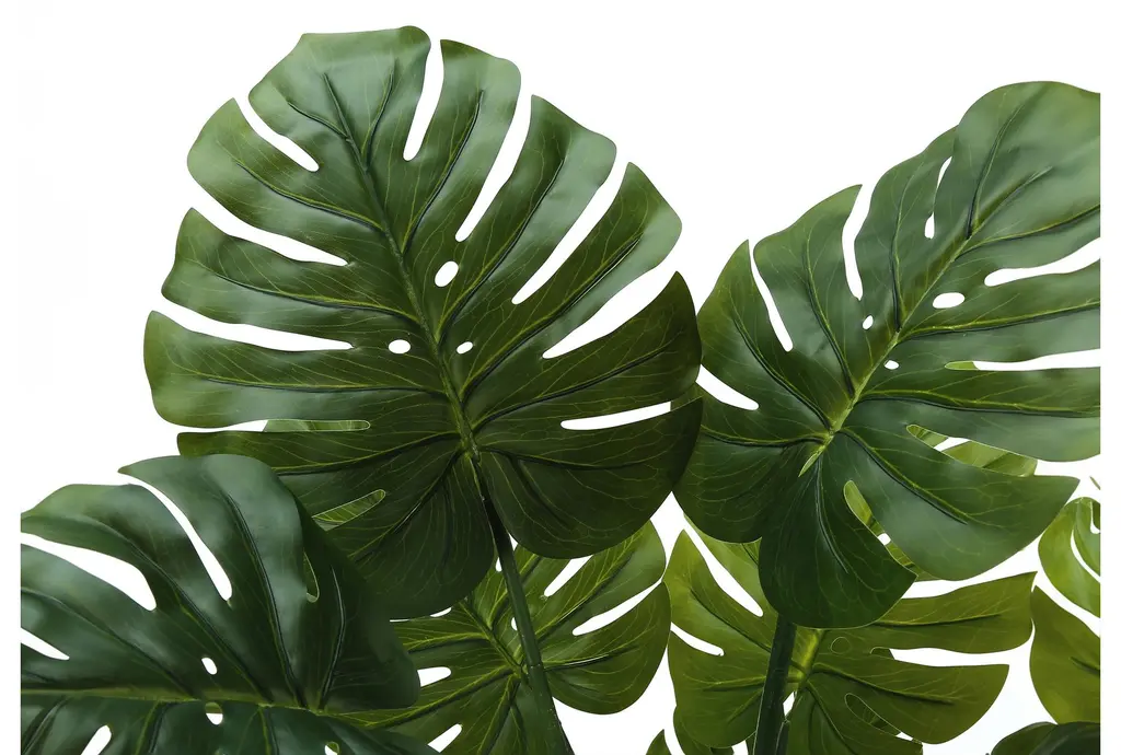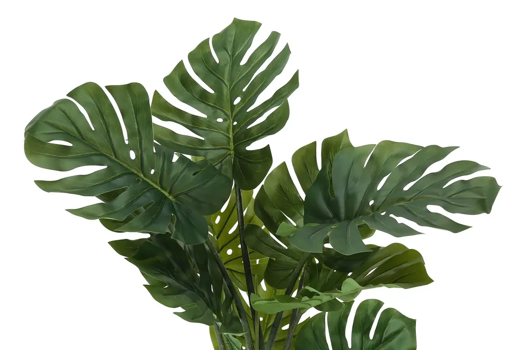 Add a vibrant burst of greenery to any floor of your home or office with this 45" tall artificial indoor monstera tree in a 6" black pot. The 10 real touch, lush green leaves create a lifelike appearance. This easy-care faux potted plant is made from the highest quality materials and requires no maintenance or watering, for a sustainable, environmentally friendly, decorative accent that will last a lifetime.