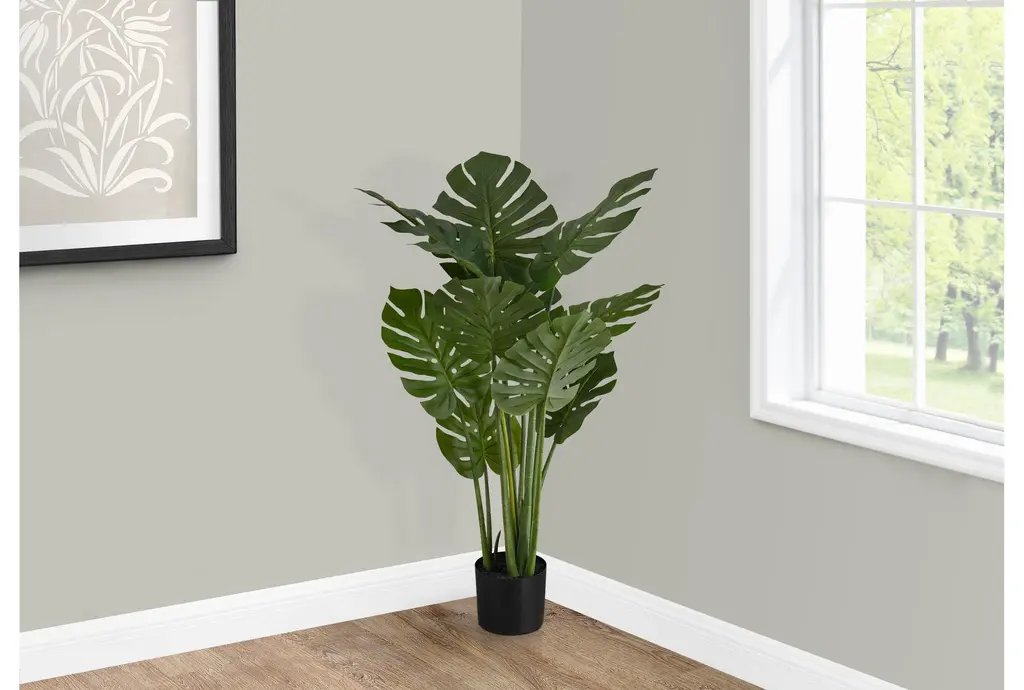 45" Green Plastic Artificial Monstera Tree In Black Pot