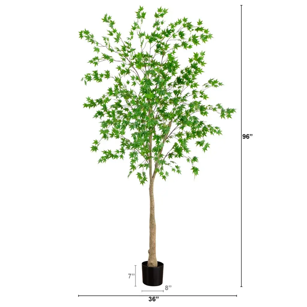 Add a whimsical touch to your decor with our artificial maple tree. Inspired by a dense, green woodland, this tree is designed to amplify the natural charm of your living space with its canopy of cluster-like leaves draping from delicate brown branches. Each element is crafted from premium materials by expert horticulturists, ensuring a lifelike presence that requires zero upkeep. Bend the branches, shape your tree to create a one-of-a-kind look that fits perfectly within your personal aesthetic. Standing at 8' and housed in a nursery planter, this maple tree is ideal for gracing rooms with high ceilings, bringing a breath of fresh forest air to your indoor environment.