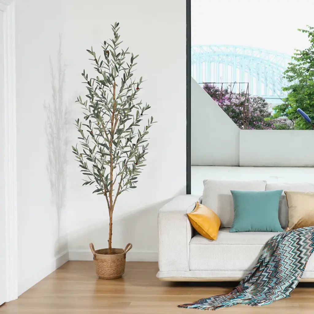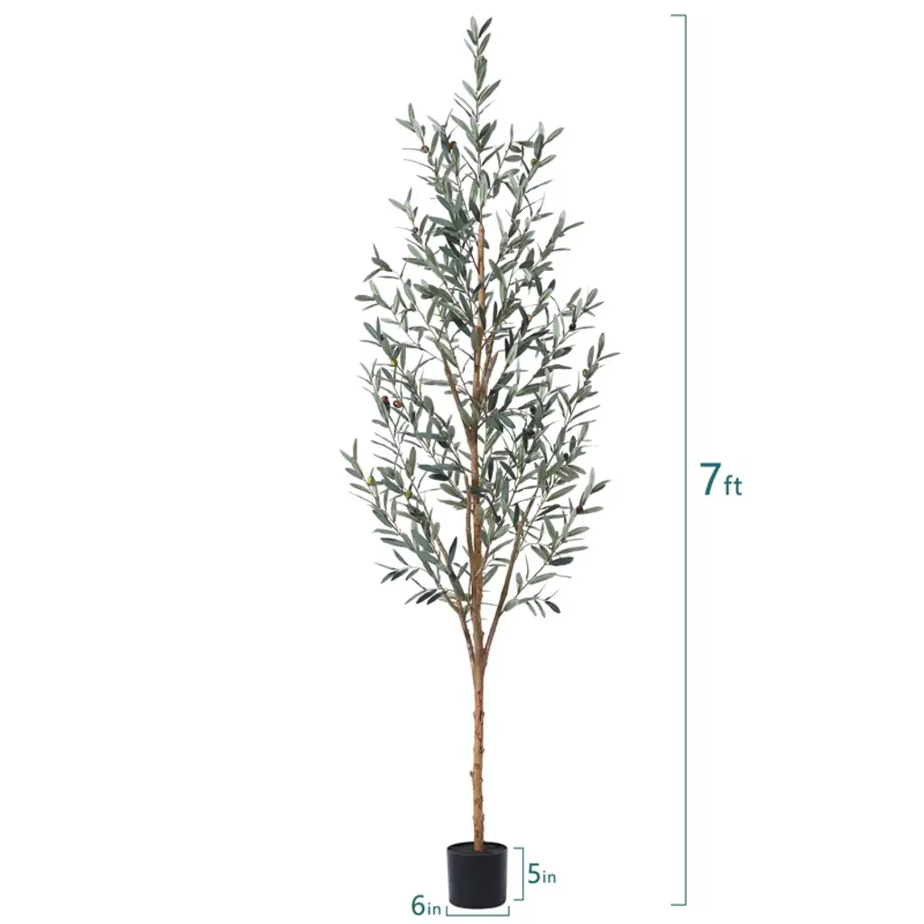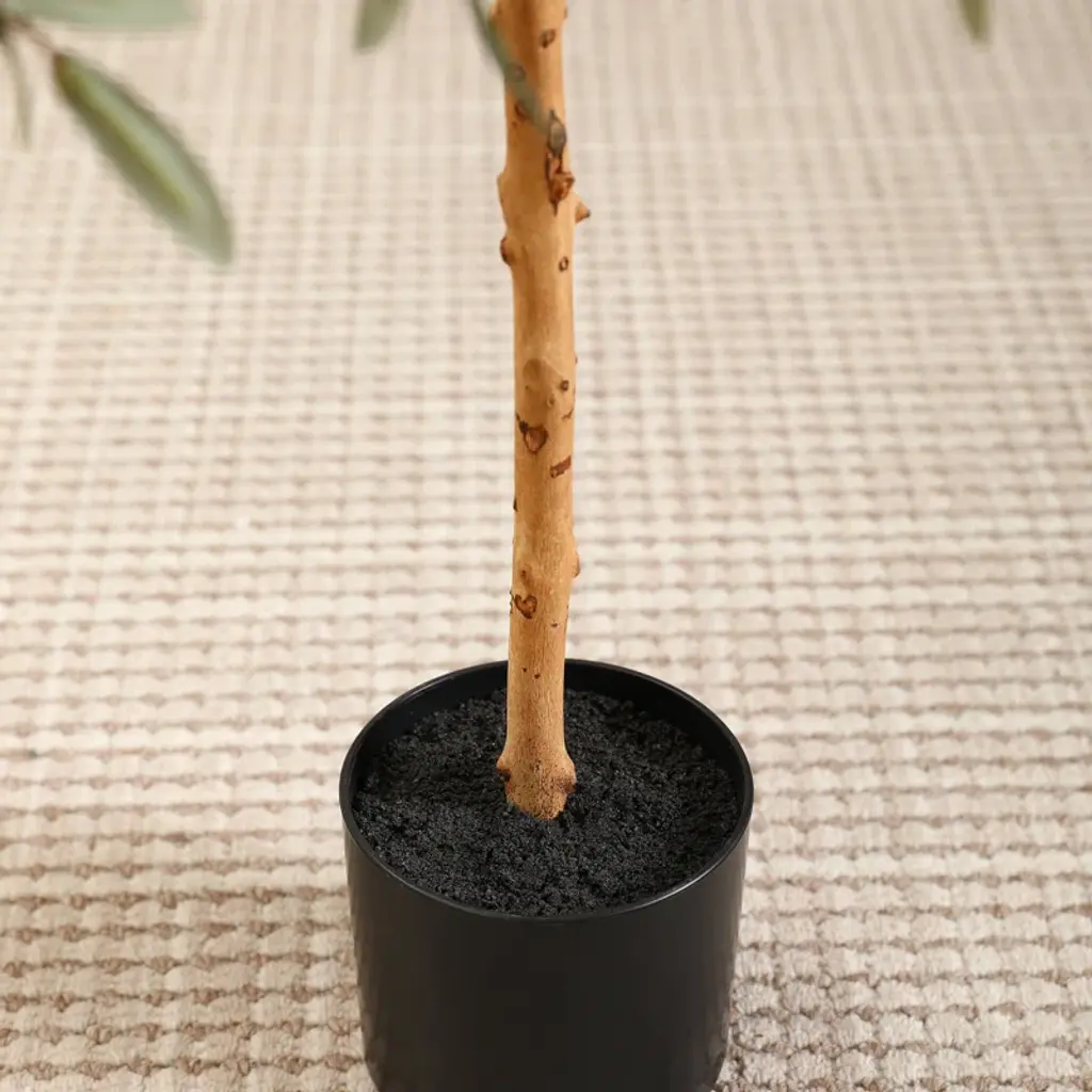 Our Artificial Olive Tree in Black Pot is the perfect home decor for anyone looking for an easy way to spruce up their indoor or outdoor spaces. Made with natural wood and full of lush, green foliage, this big fake plant mimics the look and feel of a real olive tree without any of the hassle. The artificial olive plants are crafted to mimic the exact look of natural olive trees, down to each individual leaf. Whether you're looking to add some life to your living room or bring a touch of the outdoors to your patio, this faux olive tree is perfect for you. The olive tree branches are adjustable and you can easily rearrange them to your liking. Item may need to be reshaped when removed from the box. Overall, this faux olive tree is a prime example of how to elevate your living space and impress your guests effortlessly. Give a new lease of life to your space with our Fake Olive Tree.