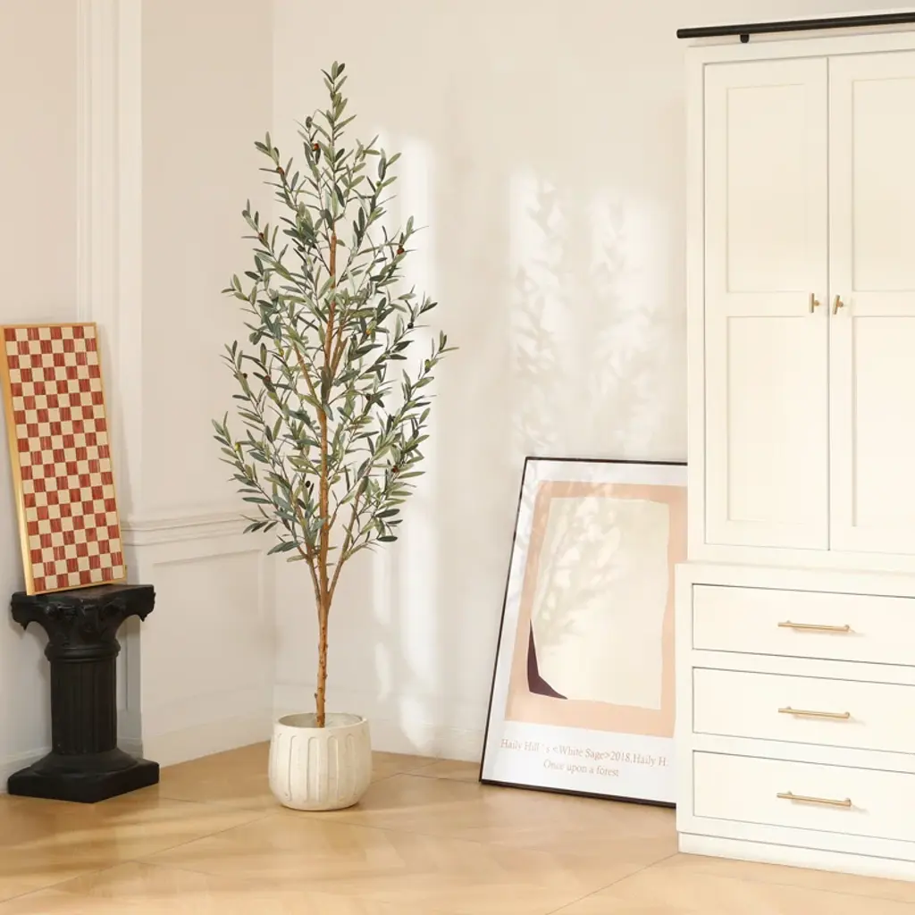 Adcock Artificial Olive Plants With Realistic Leaves And Natural Trunk, Fake Potted Tree Home Decor
