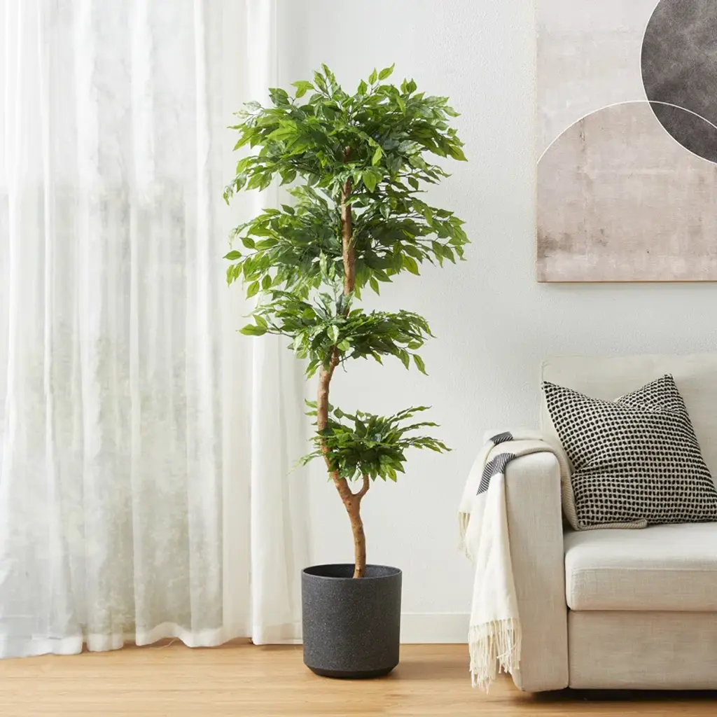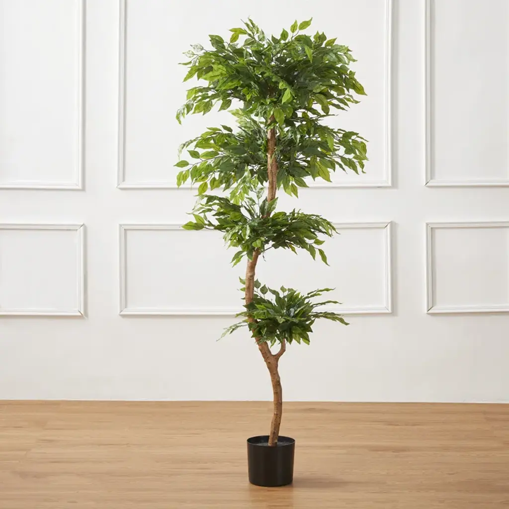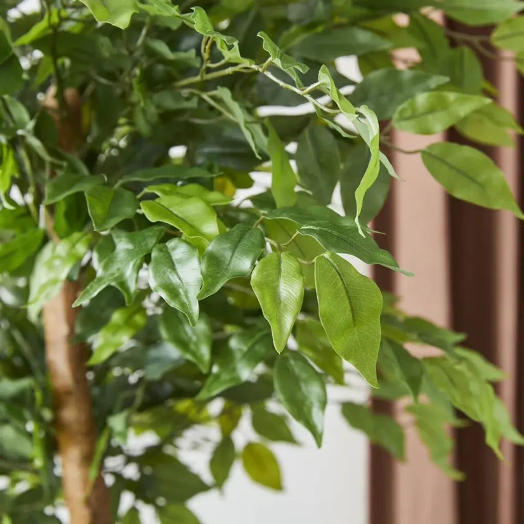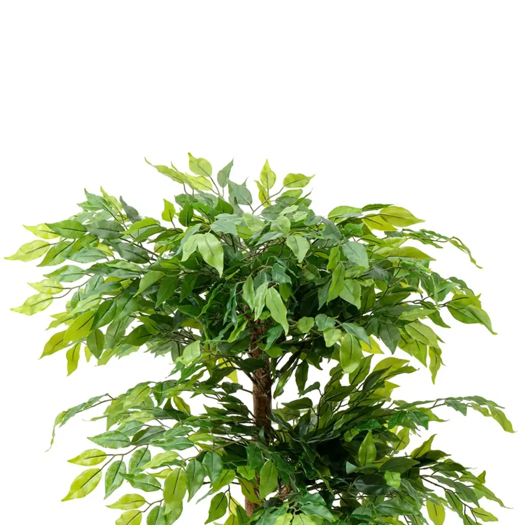Elevate your indoor space with this vibrant, lifelike artificial ficus tree, adding a touch of natural beauty and fresh green vibes. It features a unique winding trunk with lush leaves, nested in a weighted nursery pot. Crafted from high-quality plastic, it remains evergreen and needs low maintenance. This attractive and versatile faux plant is ideal for harmonizing with various decor styles, creating an eye-catching landscape that is sure to transform your home, office, or any living space into an organic and delightful atmosphere!
