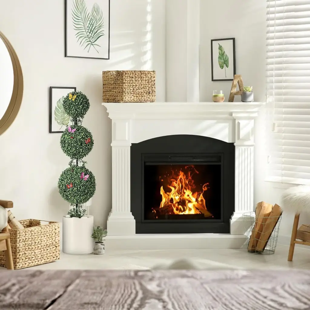 Artificial Triple Ball Topiary Trees With Trophies Flower Pots, Artificial Plants Outdoor With Vines & Insects Decoration, Topiary Balls Trees, 4Ft